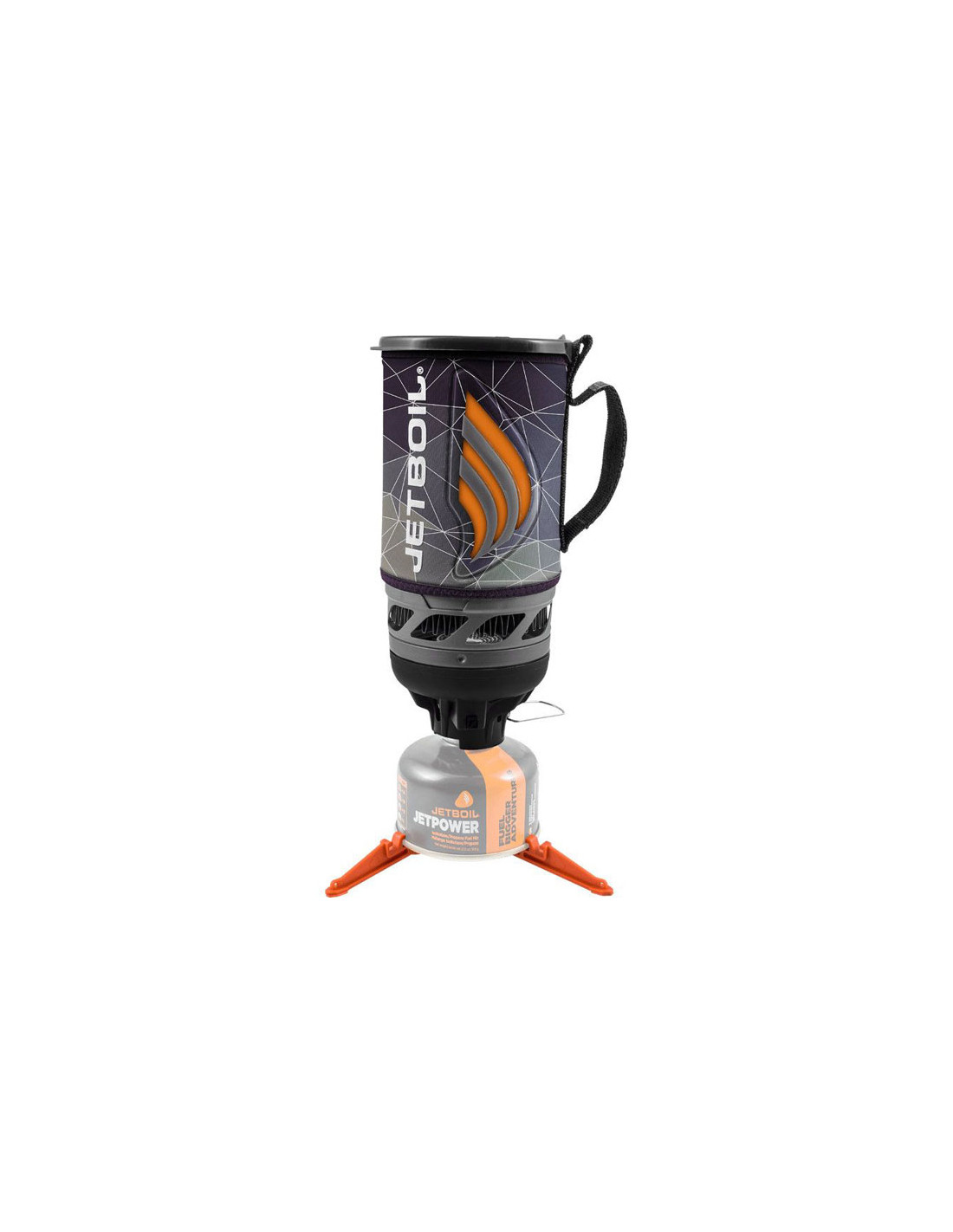 El Jetboil Flash incluye el quemador y el recipiente de un litro de capacidad. Se puede complementar además con un pequeño trípode (no incluido) que da más estabilidad al cartucho de gas. El quemador está diseñado para estar bien protegido frente a los golpes y tiene un indicador que permite comprobar mediante el cambio de color el aumento de temperatura.