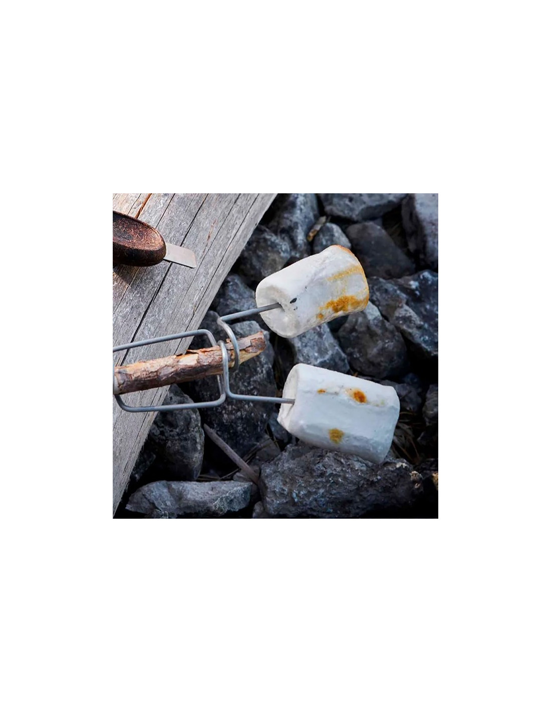 El FireFork Bio de Grandpa's es una herramienta ingeniosa y práctica para cocinar alimentos en una fogata. Su diseño inteligente con puntas curvas sujeta firmemente salchichas, malvaviscos y otros alimentos, mientras que el alambre de acero inoxidable reciclado proporciona durabilidad. Simplemente fija el FireFork a cualquier palo o rama y disfruta de una experiencia de cocina al aire libre más divertida y segura.