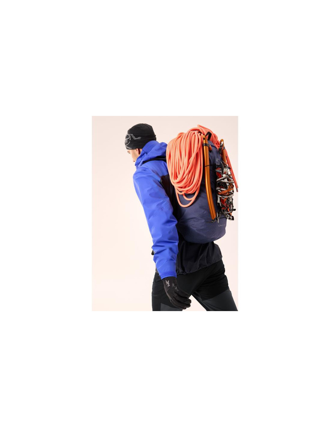 El perfil aerodinámico se mantiene fuera del camino, y el intuitivo sistema de cordón de ajuste de tirar para abrir/tirar para cerrar brinda un acceso rápido y fácil. Una correa superior asegura una cuerda, seis puntos de amarre y un sistema elástico integrado proporcionan opciones de transporte externo, y un reflector RECCO® integrado puede ayudar en la búsqueda en situaciones de rescate.