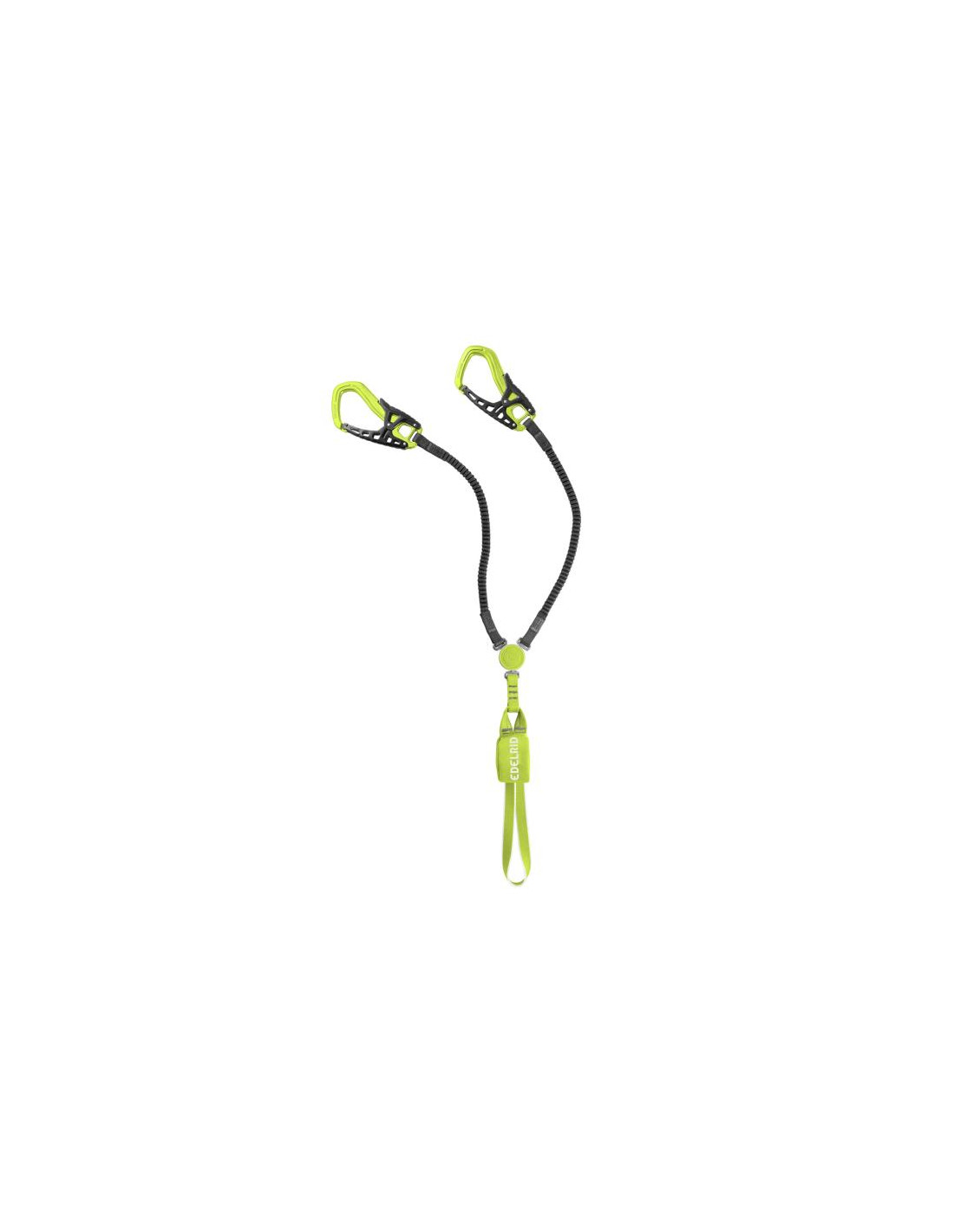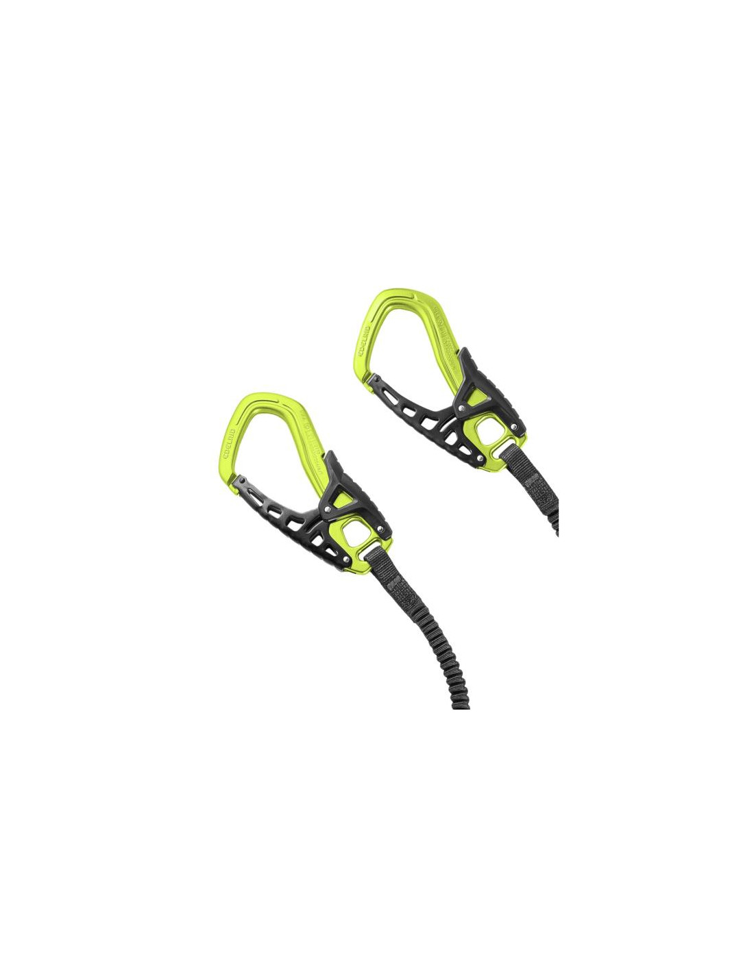 Los brazos elásticos y estrechos de HMPE de alta resistencia y resistente al desgaste mantienen el peso total bajo. Los mosquetones One-Touch II, de eficacia probada, tienen un tacto agradable, son fáciles de usar gracias a la gran abertura y evitan que los dedos queden atrapados entre el cable y la puerta. La corta longitud de suspensión también simplifica el manejo.