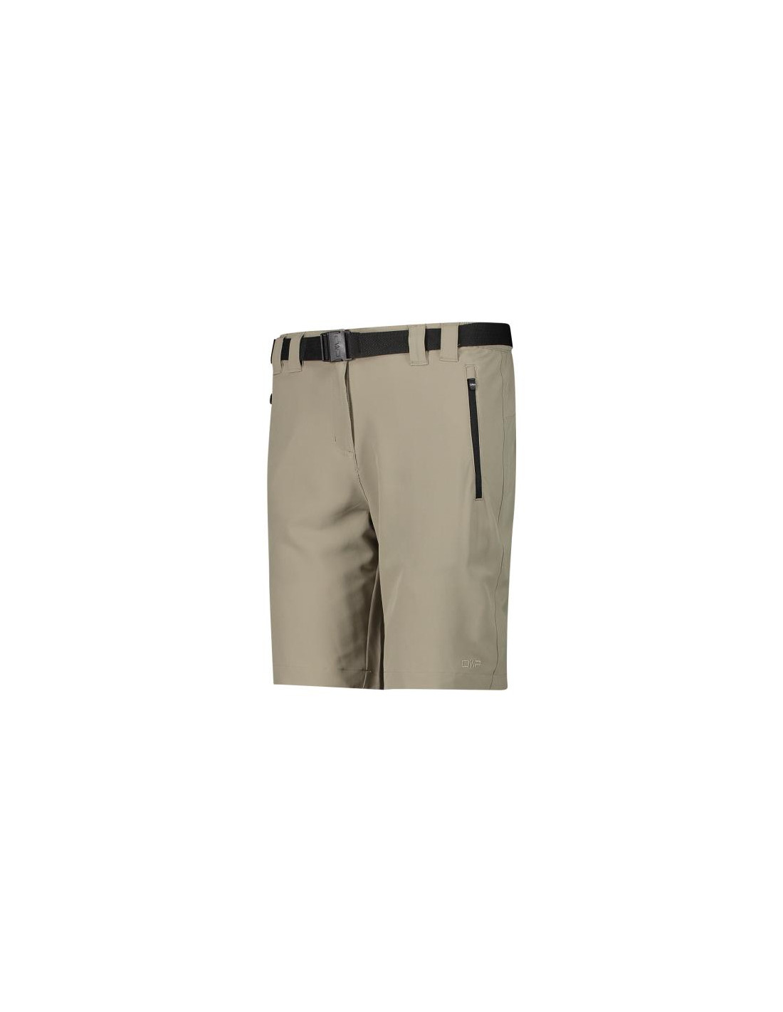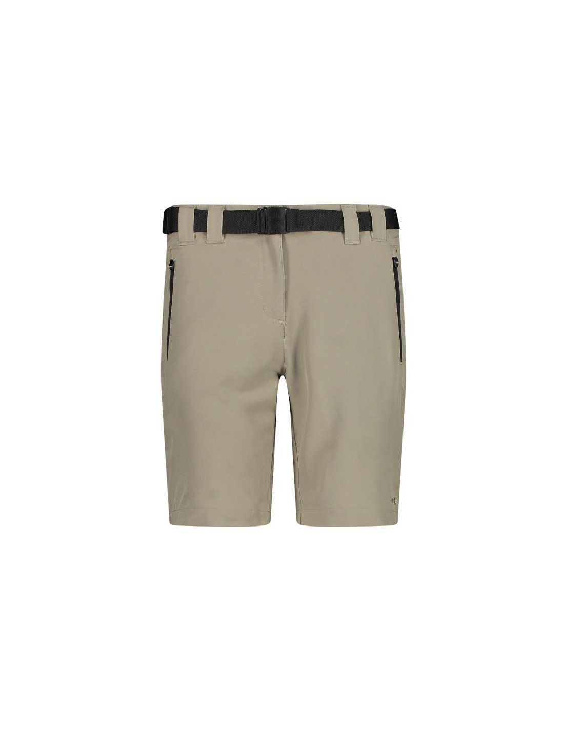 Pantalón corto de trekking ajustado para mujer en tejido elástico en 4 direcciones con dos prácticos bolsillos laterales con cremallera en los que guardar los artículos esenciales que necesitas para llevar en tus excursiones. Estos pantalones cortos son ligeros, pero resistentes.