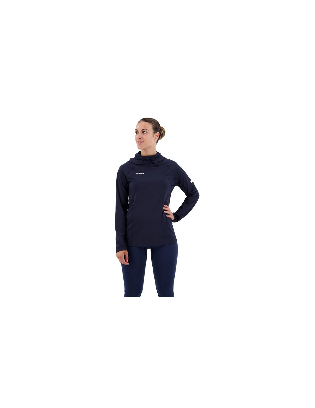 Cuenta con protección solar UPF 50+ y un tratamiento antiolor, además de detalles inteligentes como bucles para los pulgares y una capucha con protección para la barbilla que ofrece una defensa adicional contra el sol y el viento. El tejido de punto, aprobado por bluesign®, está fabricado con poliéster reciclado, lo que minimiza el impacto ambiental.