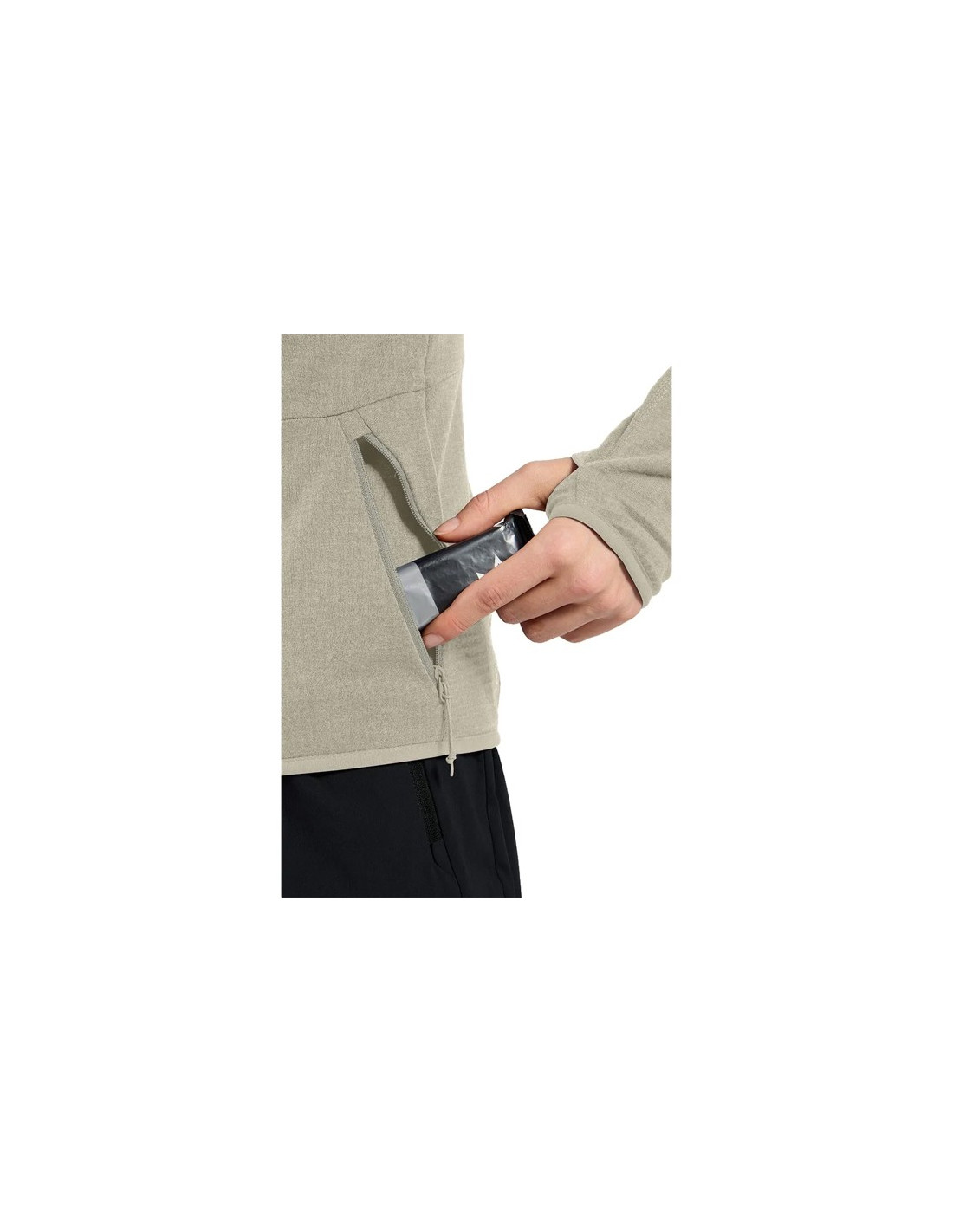Diseñada para ofrecer confort y funcionalidad, cuenta con tres bolsillos con cremallera, presillas para los pulgares que mantienen las mangas en su sitio y una capucha ajustada para mayor protección. Es una prenda perfecta para mantener el calor en cualquier aventura alpina.