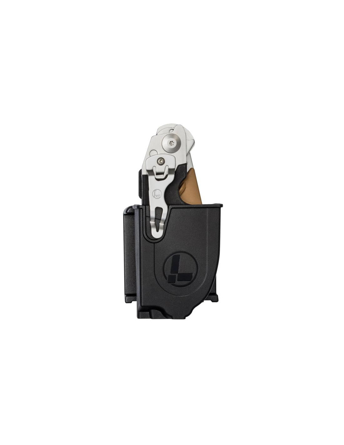 Incluye una funda de plástico compatible con Molle (Modular Lightweight Load-Carrying Equipment o Sistema Modular de Trasporte Ligero) sistema que permite fijar accesorios al chaleco o a la mochila. Esta funda permite que te puedas colocar la herramienta de manera horizontal o vertical. También dispone de una anilla de sujeción para colártela, por ejemplo del cuello, o un clip de bolsillo sustituible que si prefieres lo puedes quitar.