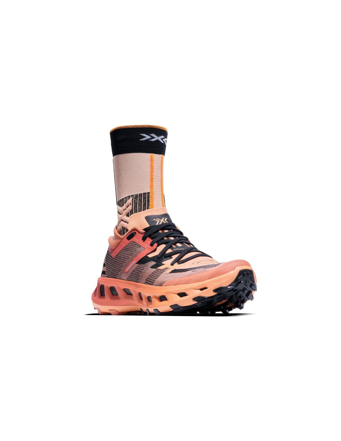 - La tecnología perfectamente alineada une el calcetín y el calzado para lograr un rendimiento impecable y un ajuste y una sensación sin precedentes.
