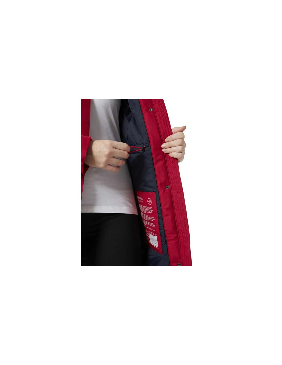 - Säädettävä vyötärö, jossa on räätälöitävissä oleva huppu. hihansuut mukavuutta ja lämmön säilyttämistä varten.