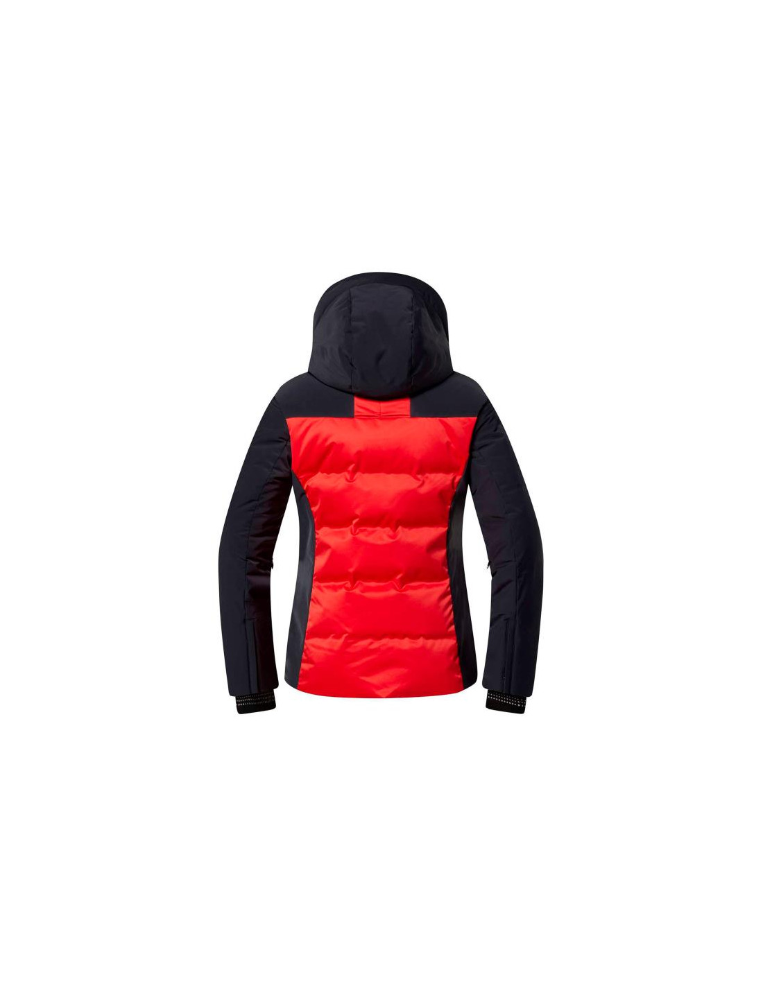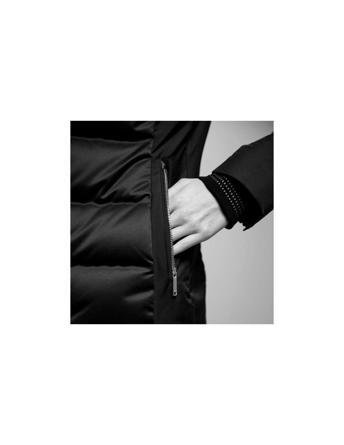 Alapaneelit tiivistetään lämpöinduktiolla kylmien kohtien minimoimiseksi ja lämmön säilyttämiseksi. Sulan tilavuus vaihtelee takin läpi tasapainottaen untuvatakkien runsasta ulkonäköä. Hupun sisäpuolella oleva synteettinen turkki tuo kaulaan ripauksen eleganssia ja lämpöä. Siinä on myös uusi irrotettava sisävuori, joka helpottaa lämpöä ja helppoa pesua. peseminen. Takin takana on Breathability System etukauluksessa D-LASER BREATHING System -järjestelmällä, ja tricot- sekä vettähkivät kalvosimet ovat hieman lameisia.
