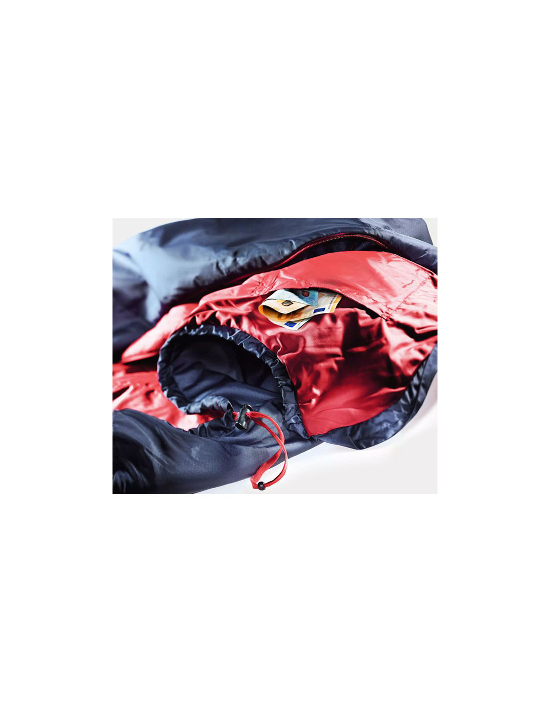 Synteettistä kuitua oleva makuupussi.