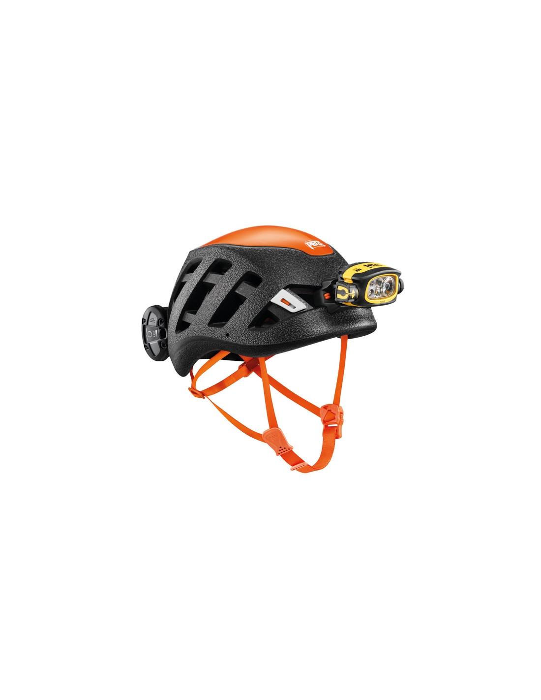 Petzl-lisävaruste Duo-otsavalon kiinnittämiseksi Sirocco-kypärään. Se koostuu kahdesta irrotettavasta levystä, joista toinen on edessä ja toinen takana, joihin voit sijoittaa Duo S- ja Duo Z2 -taskulamput.
