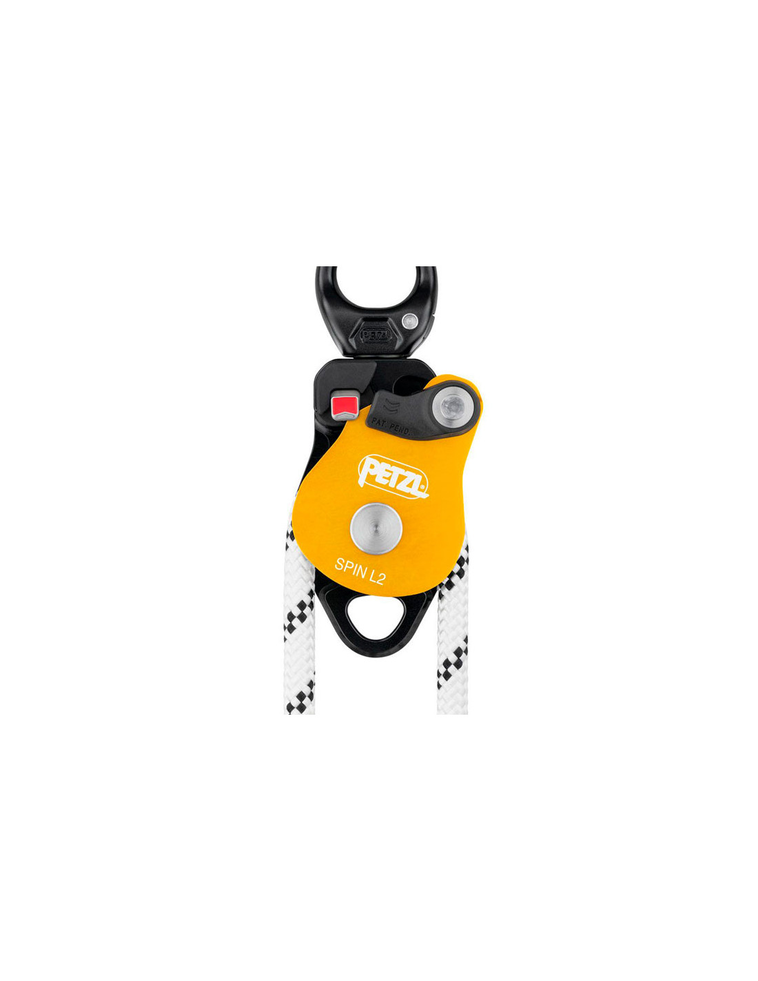 Kaksoishihnapyörä tehokkaalla vaihtajalla. Petzl-tuotemerkin Spin L2 hihnapyörä on suunniteltu yksinkertaistamaan mahdollisimman paljon nosto- tai kuormansiirtojärjestelmien asennusta. Tehokas hihnapyörä, jossa on integroitu kääntyvä pyörän asennon helpottamiseksi, siinä on suuri silmukka, joka mahdollistaa kolmen karabiinin asentamisen, se on yhteensopiva myös tekstiilien kanssa tylppojen reunojen ansiosta.