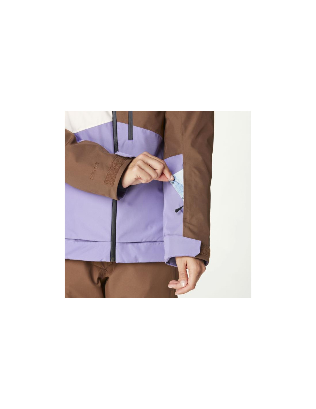 Se on ekologisesti suunniteltu pyöreästä tekstiilijätteestä peräisin olevasta polyesterista, ja se on varustettu 20K/20K-kalvolla, joka takaa vertaansa vailla olevan hengittävyyden ja vedenpitävyyden. Se on vahvistettu kestävällä PFC-vapaalla vettä hylkivällä käsittelyllä. Tässä hengittävyyttä ja lämpöä varten suunnitellun takissa on myös vetoketjulliset tuuletusaukot, jotka helpottavat lämpötilan hallintaa intensiivisemmillä hetkillä puuterissa.