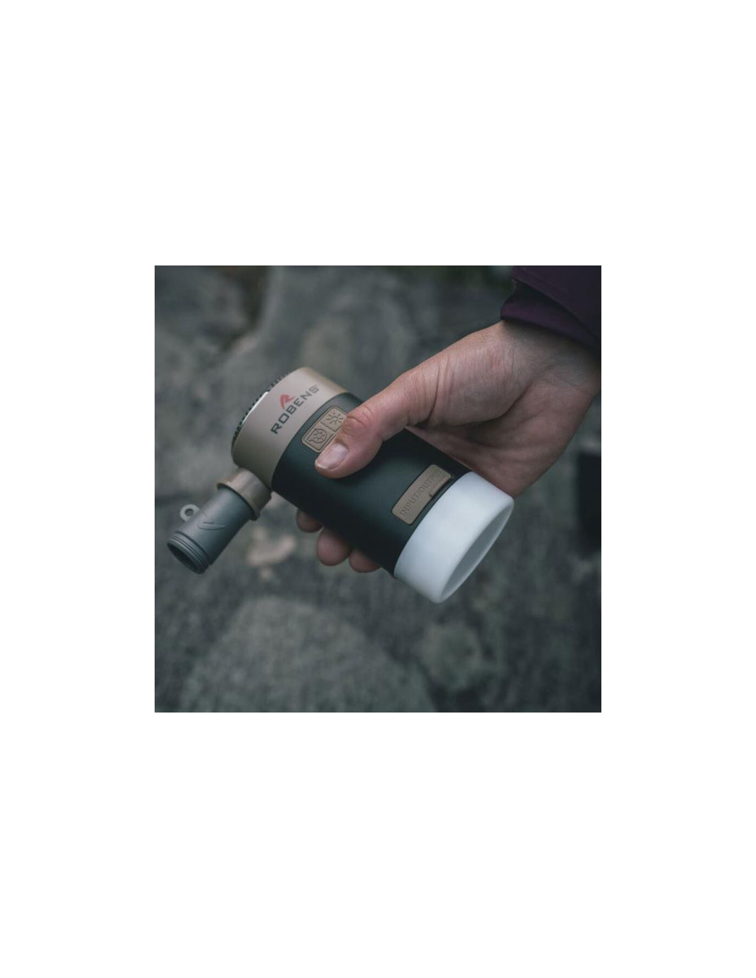 - Robens-venttiilisovitin, 5 suukappaletta ja USB-USB-C-latauskaapeli mukana