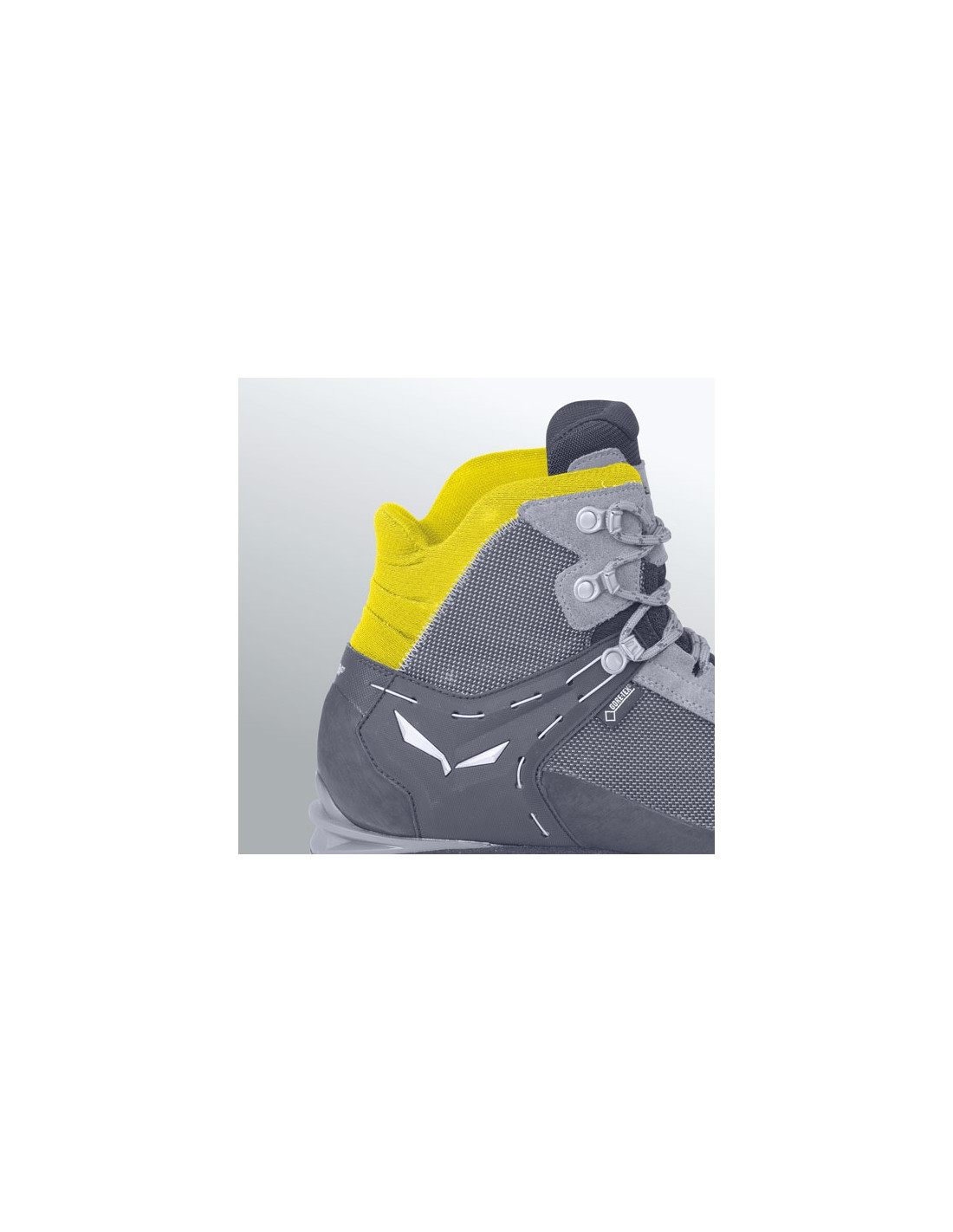 Rapace GTX lisää mukavuutta nilkan alueella 3F System Evon ansiosta ja sisältää tekniset suljinjärjestelmät metallikoukuilla ja nauhoilla, jotka mukautuvat kenkiin tarkasti ja tarkasti. vaihe.