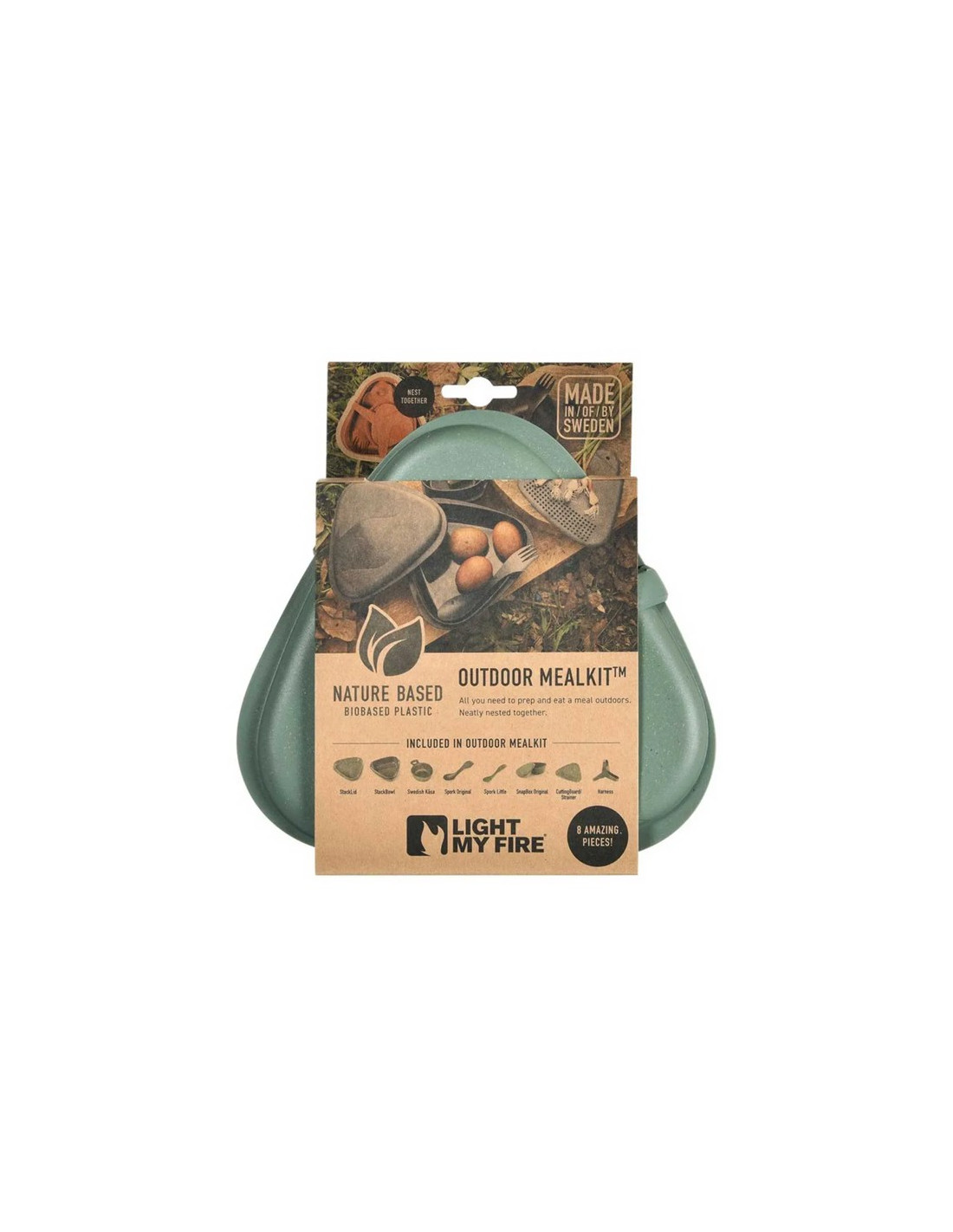 Outdoor MealKit Bio on monipuolinen 8-osainen setti, joka on suunniteltu yksinkertaistamaan ja tekemään ulkona ruoanlaitosta nautinnollisempaa. Jokaisella elementillä on useita toimintoja ja se tarjoaa kaiken, mitä tarvitset aterioiden valmistukseen, ruoanlaittoon ja nauttimiseen luonnossa.
