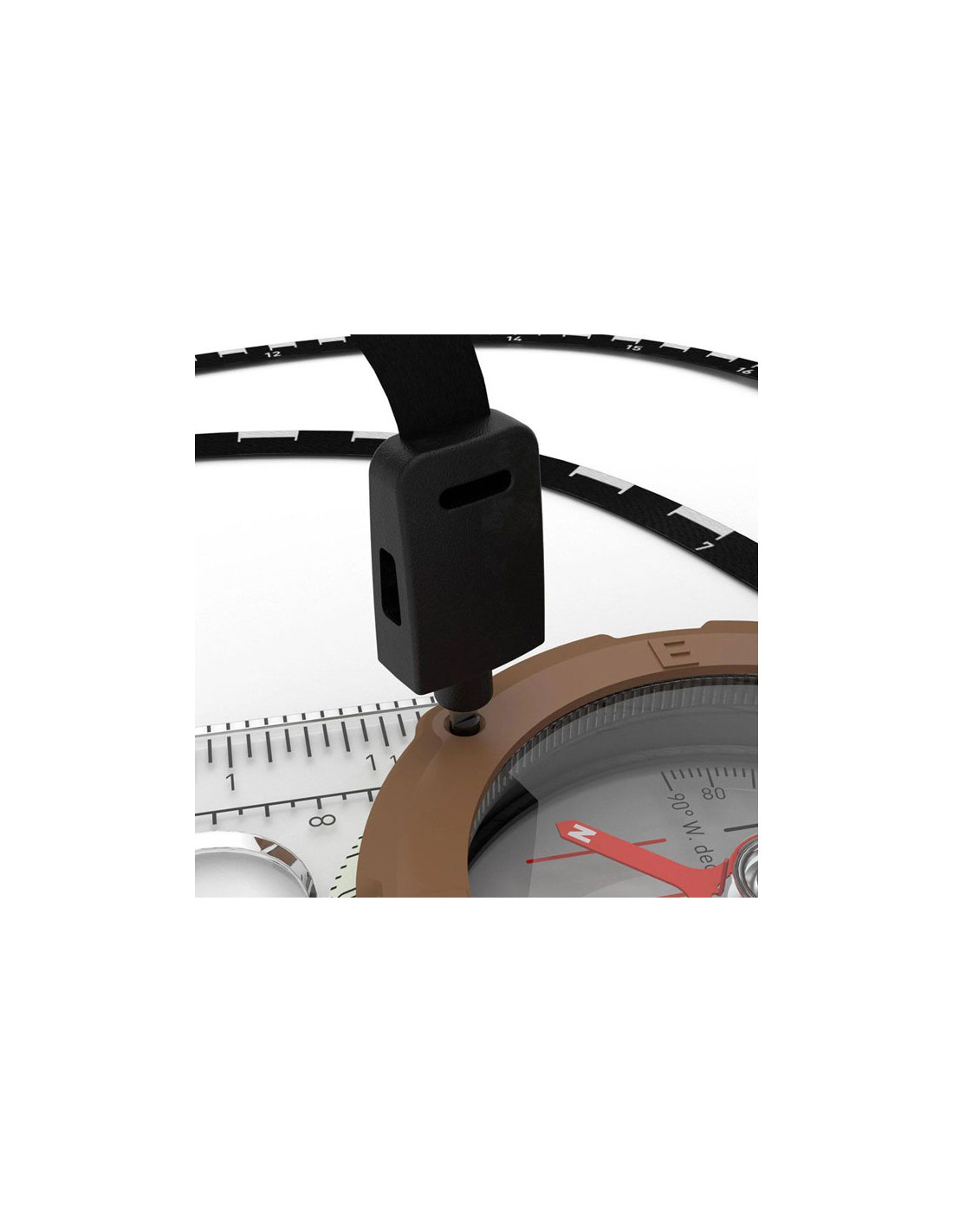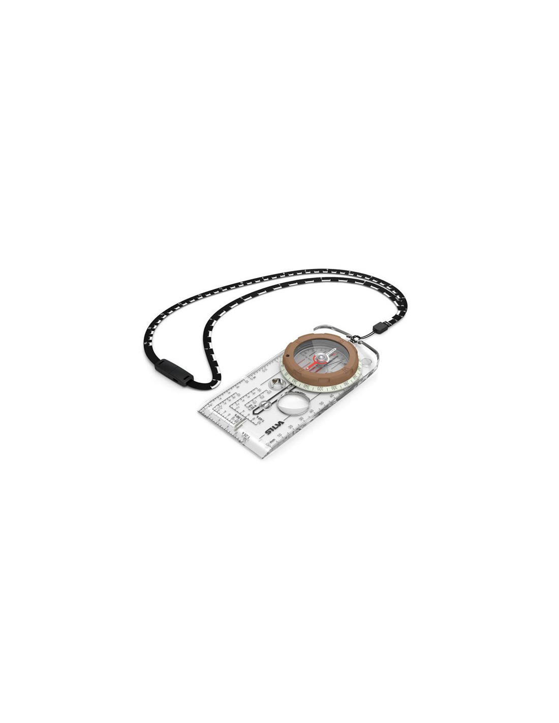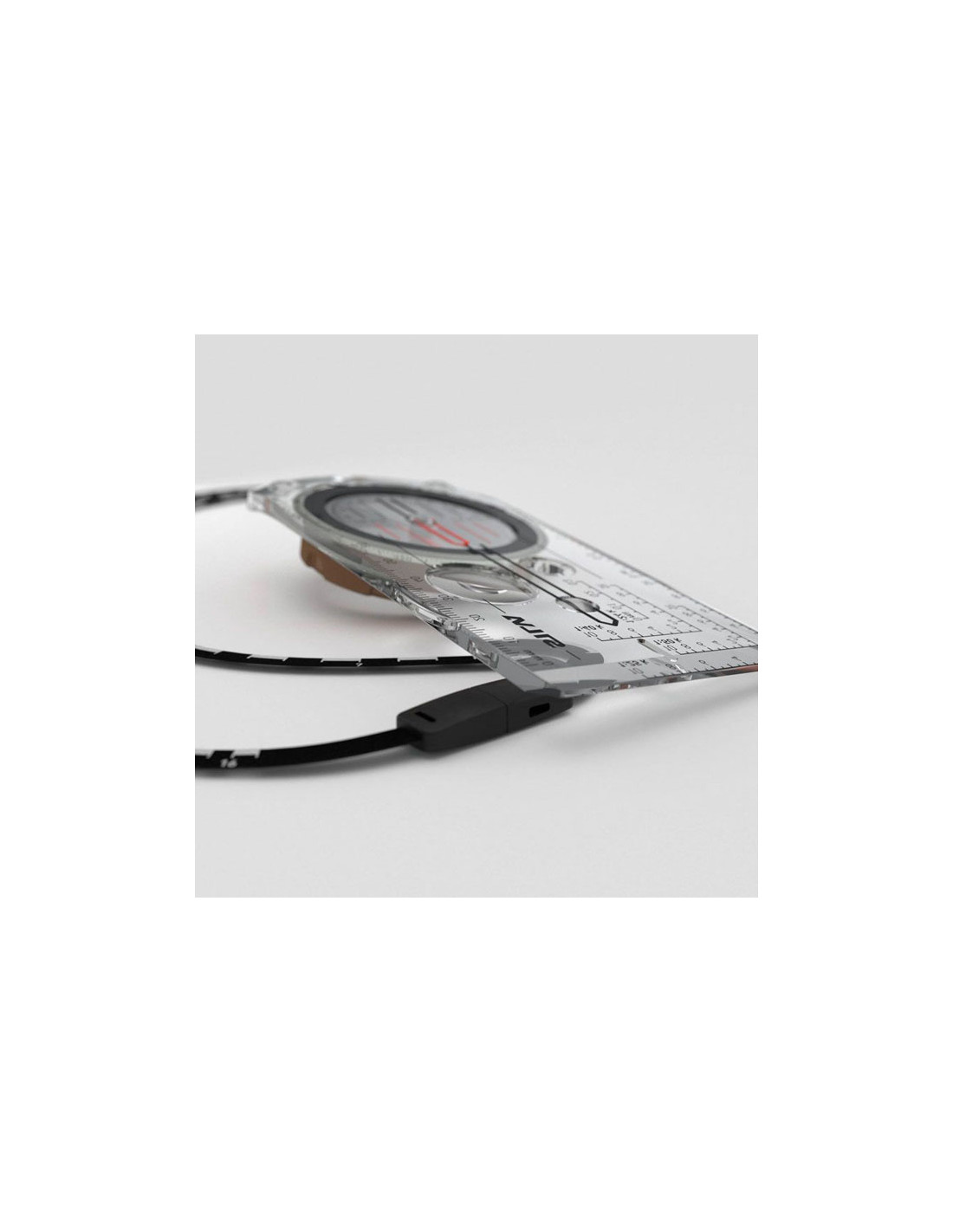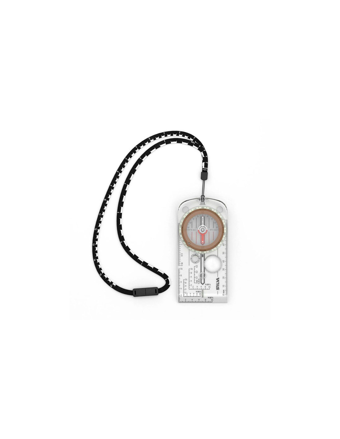 Tämä kompassimalli on varustettu irrotettavalla vaakajohdolla, joka toimii viivaimen tavoin. Vaakahelmessä on kaksi vaakaa; 1:25 ja 1:50, joten kävelymatkasi mittaaminen on helppoa. Koska se on pehmeä ja joustava, se on helppo sijoittaa suoraan reitille kartalla, kun olet pellolla tai suunnittelet seuraavaa seikkailuasi.