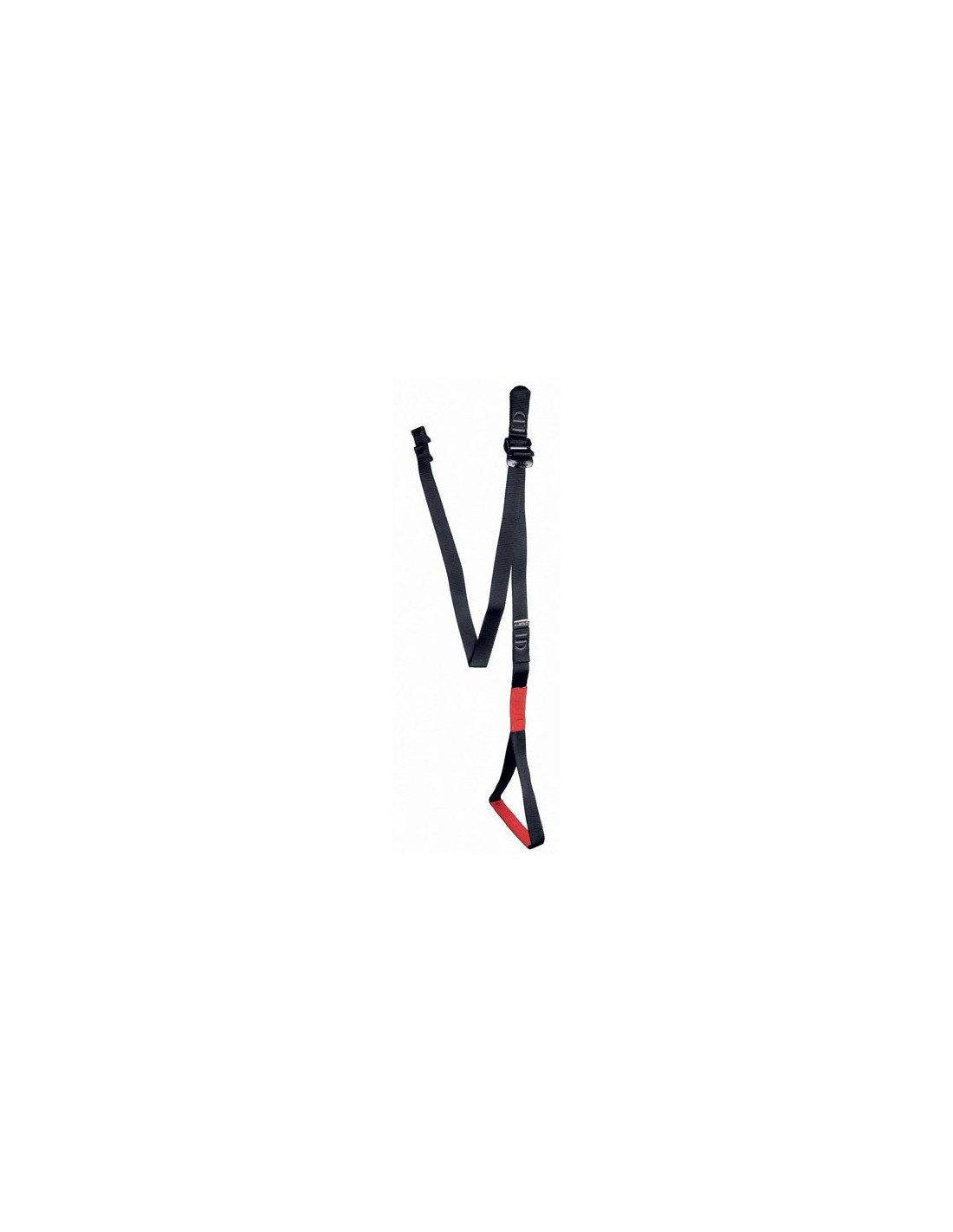 Säädettävä hihnajalustin, joka voidaan asentaa käsi- tai nyrkkinousulaitteeseen ja suorittaa köysinousuja.