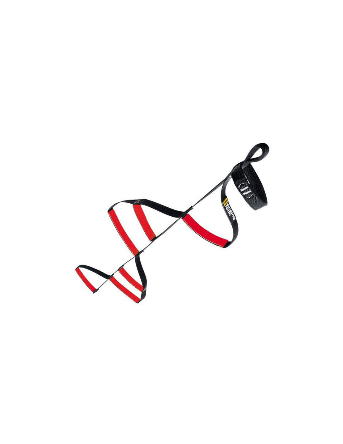 Askelmien pohjassa on punainen merkintä helpottamaan katselua. Siinä on yläkahvasilmukka ja toinen erityinen silmukka, jolla se voidaan yhdistää toiseen jalustimeen.