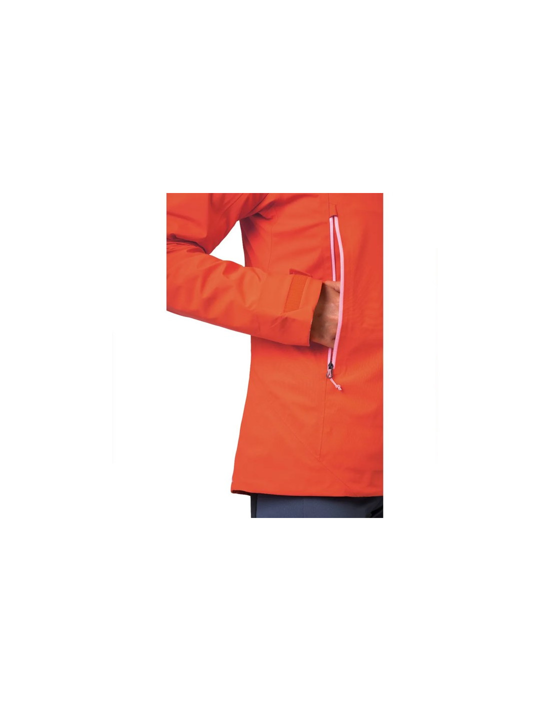 Urheilullisen ja tiukan istuvuuden omaavassa takissa on säädettävä helma ja muotoillut hihat, joissa on tarranauhat. Vedenpitävät YKK-pää- ja taskuvetoketjut, säädettävä kypärän kanssa yhteensopiva huppu ja teipatut saumat ovat välttämättömiä ominaisuuksia vaativassa teknisessä käytössä. Ilmanvaihtoa helpottavat päätaskut, jotka sijaitsevat korotetussa asennossa, jotta niihin pääsee helposti käsiksi myös repun kanssa.