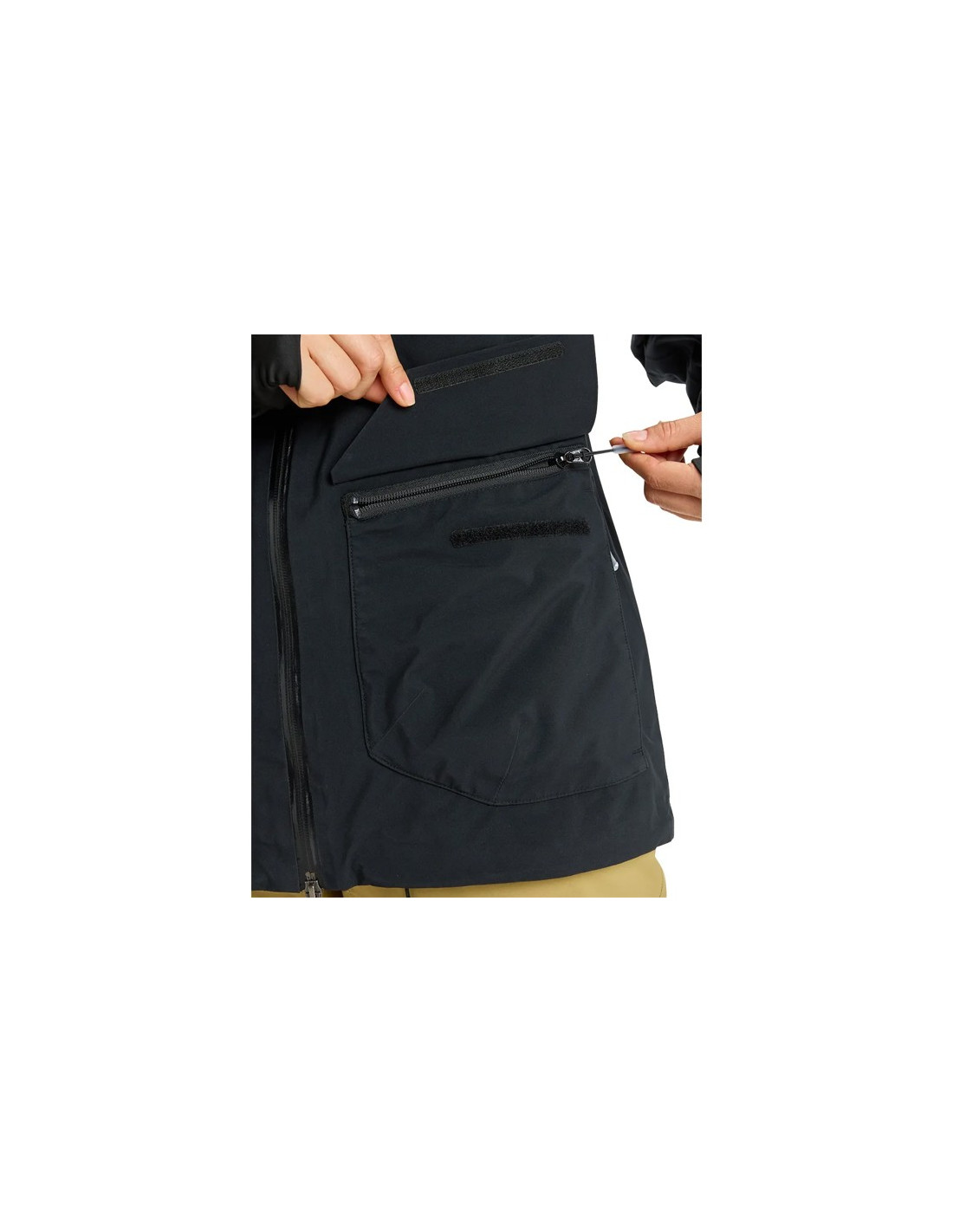 - Käsienlämmittelytaskut, kaksi rinnassa, sisätasku laitteille ja laseille sekä hissilipputasku hihassa.