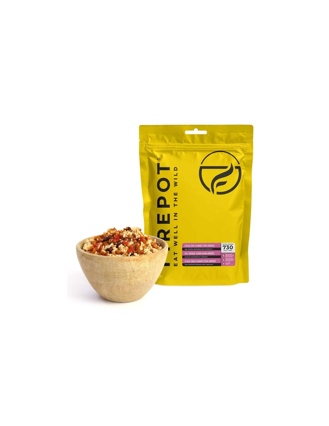 Le chili sans viande XL avec riz de Firepot est une version végétalienne du chili con carne traditionnel, idéal pour un repas chaud et nutritif lors de vos aventures en plein air. Ce plat extra-large combine du soja cuit lentement avec des piments et des haricots fumés, servi avec du riz.