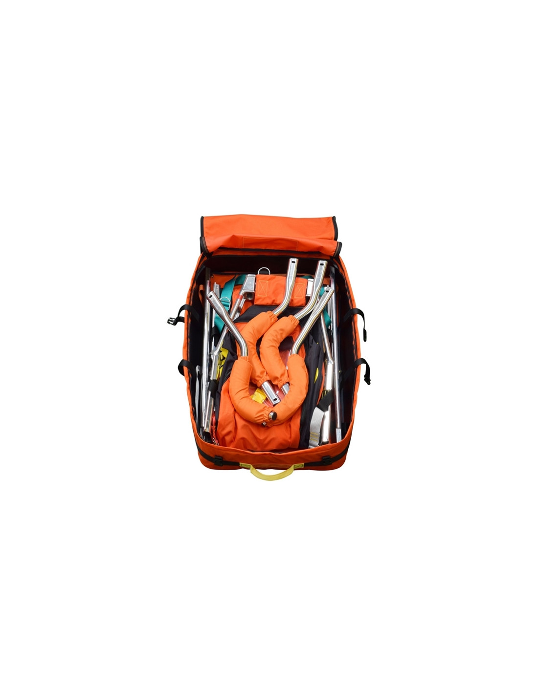 Les tiges avant et arrière sont rembourrées pour les rendre plus confortables. Les tiges avant peuvent être insérées en position droite pour un transport normal ou en position tournée pour les pentes raides ou verticales, l'empêchant de glisser des épaules du sauveteur. La longueur des tiges dorsales permet au secouriste d'avoir une bonne visibilité au sol.