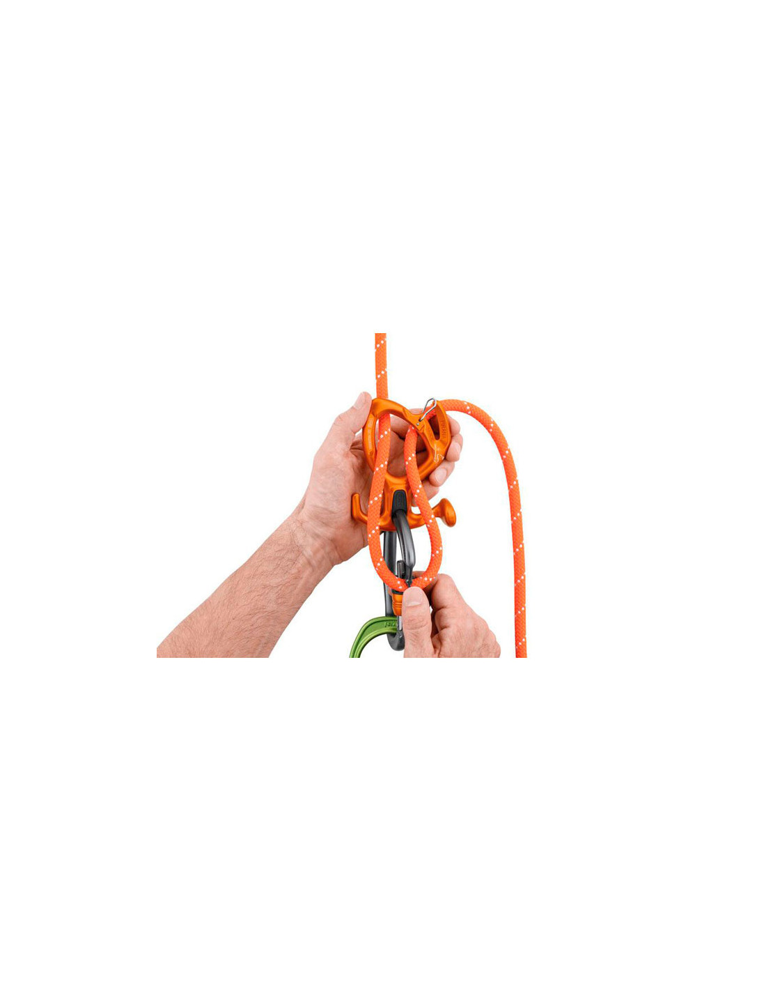 La gaine plastique assure le maintien du connecteur dans la bonne position et facilite l'installation de la corde, tout en maintenant l'appareil connecté au harnais pour limiter les risques de perte.