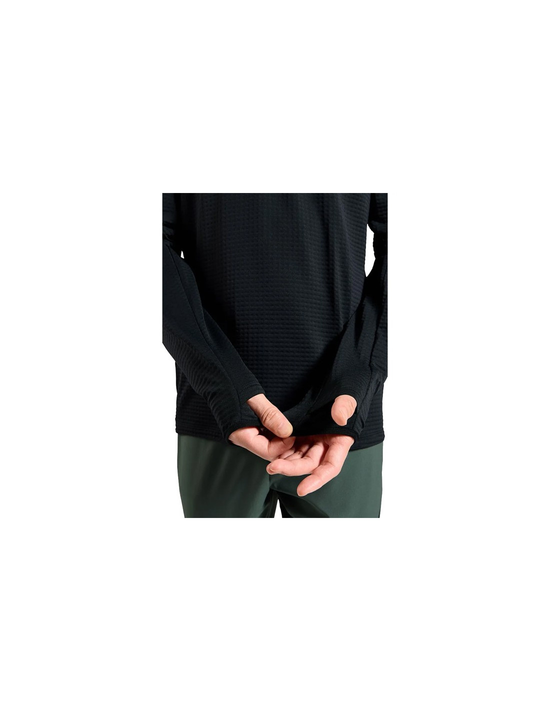 Conçu pour être utilisé comme couche intermédiaire parfaite pour la course à pied, la randonnée en automne ou comme couche supplémentaire sous une veste de ski. Pour plus de confort et de protection contre le froid, des moufles courtes intégrées aux poignets ont été ajoutées.