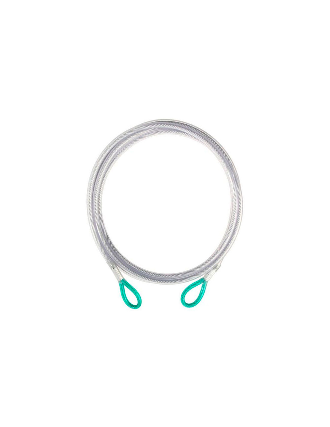 Fabriqué en acier galvanisé de 6 mm de diamètre. Il est protégé par un tube PVC épais et possède des bornes fermées aux extrémités.