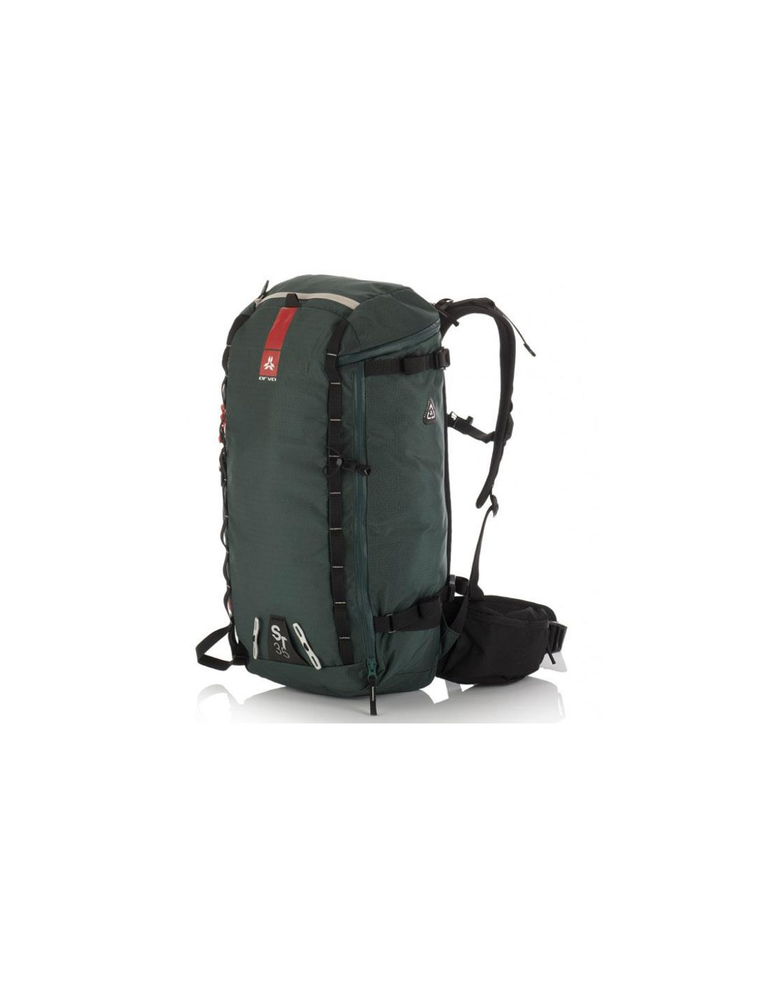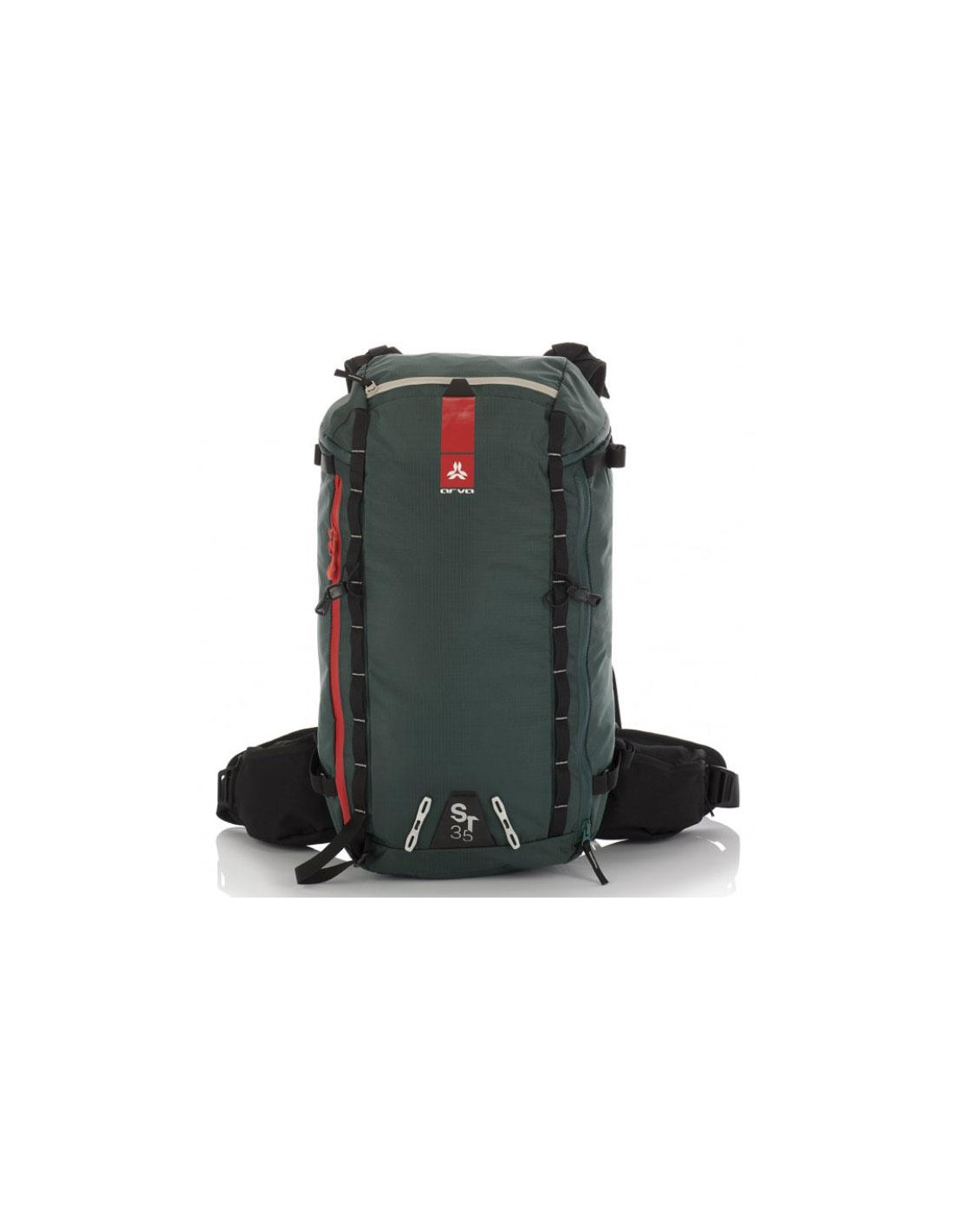 Az ST35 kifinomult kialakítása az összes megfelelő funkciót tartalmazza. Sílécek, snowboard, két jégcsákány és egy kötél szállítására alkalmas, és könnyű hozzáférést biztosít a hóvédő felszereléshez. A vízálló cipzárok mindent szárazon tartanak, az újrahasznosított szövet pedig a környezet iránti elkötelezettségünket mutatja.