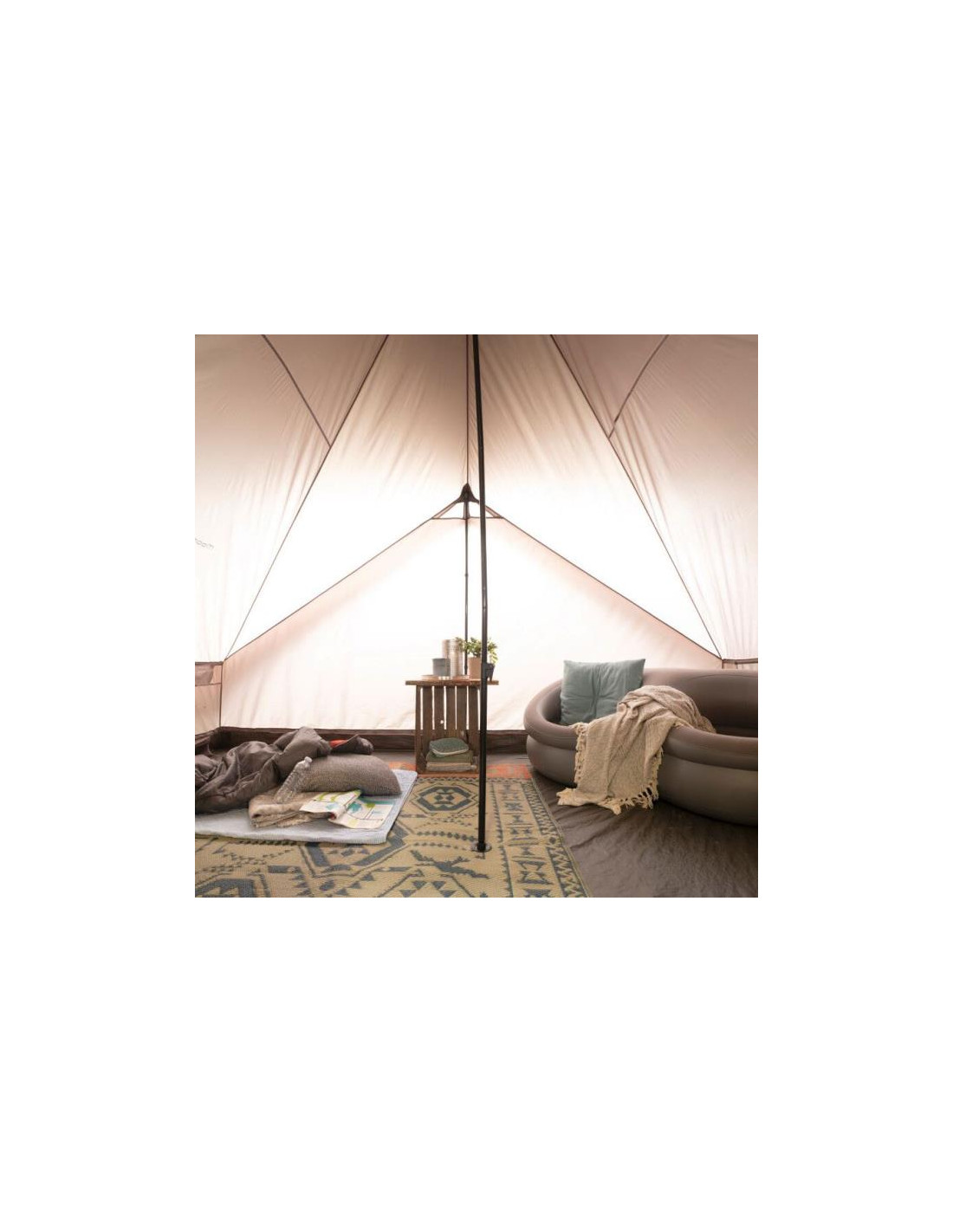 - A sátor hátsó részén található szellőzés lehetővé teszi a levegő áramlását a páralecsapódás kezelésére.