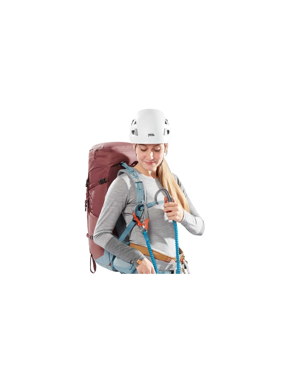 A lapos sapka teljes mozgásszabadságot biztosít a fej számára, még sisak viselése közben is. A via ferrata készlet karabáneit kézzel lehet hordozni a vállpárnákon. A fő rekeszhez könnyű hozzáférni egy nagy elülső cipzáros nyílásnak, amelyet praktikus rugalmas oldalsó zsebek egészítenek ki.
