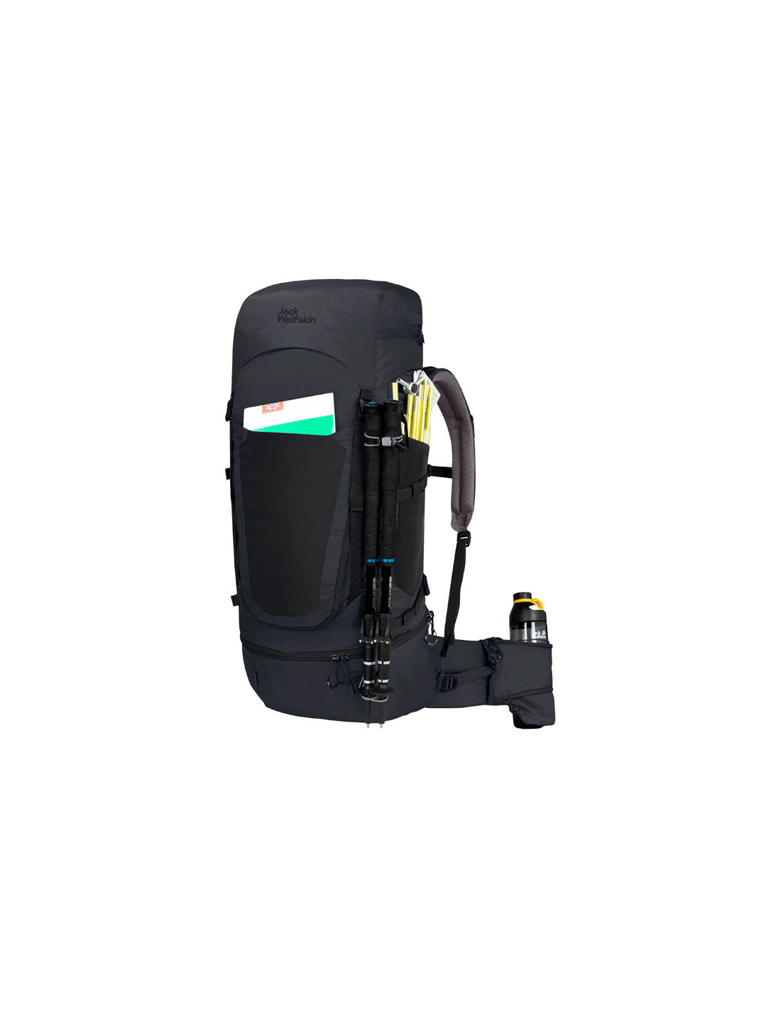 A HIGHLAND TRAIL 55+5 férfi túrahátizsák rengeteg helyet kínál, állítható magasságú felfüggesztéssel és újrahasznosított anyagokból készült.