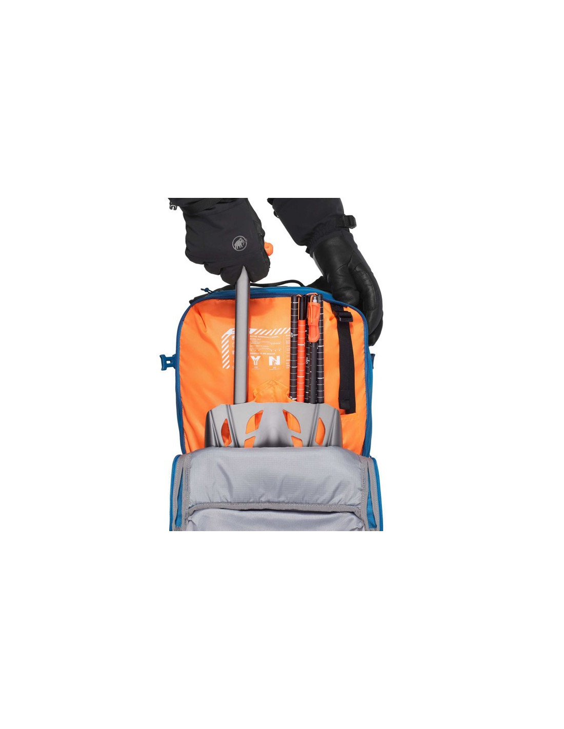 A 270-es cipzárral ellátott fő rekesz könnyű hozzáférést biztosít a felszereléshez. Egy speciális lavinafelszerelési rekesz biztosítja a vészhelyzetre való felkészültséget. Ezen kívül van egy belső rekesz a Mammut hátvédő számára.