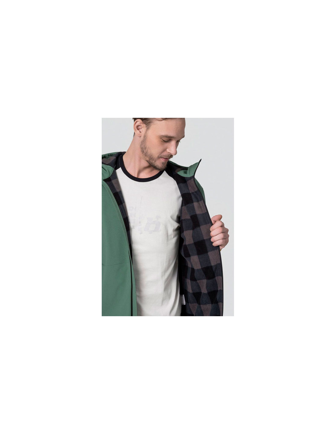 A kabát állítható kapucnival és alsó éllel, valamint anatómiai mandzsettával ellátott ujjakkal rendelkezik. A kabátnak két fő zsebe és egy mellzsebje van, mindegyik vízálló cipzárral. A Regular fit szabás kényelmes és nem korlátozza a mozgást. Jellemzők:- Férfi modell.