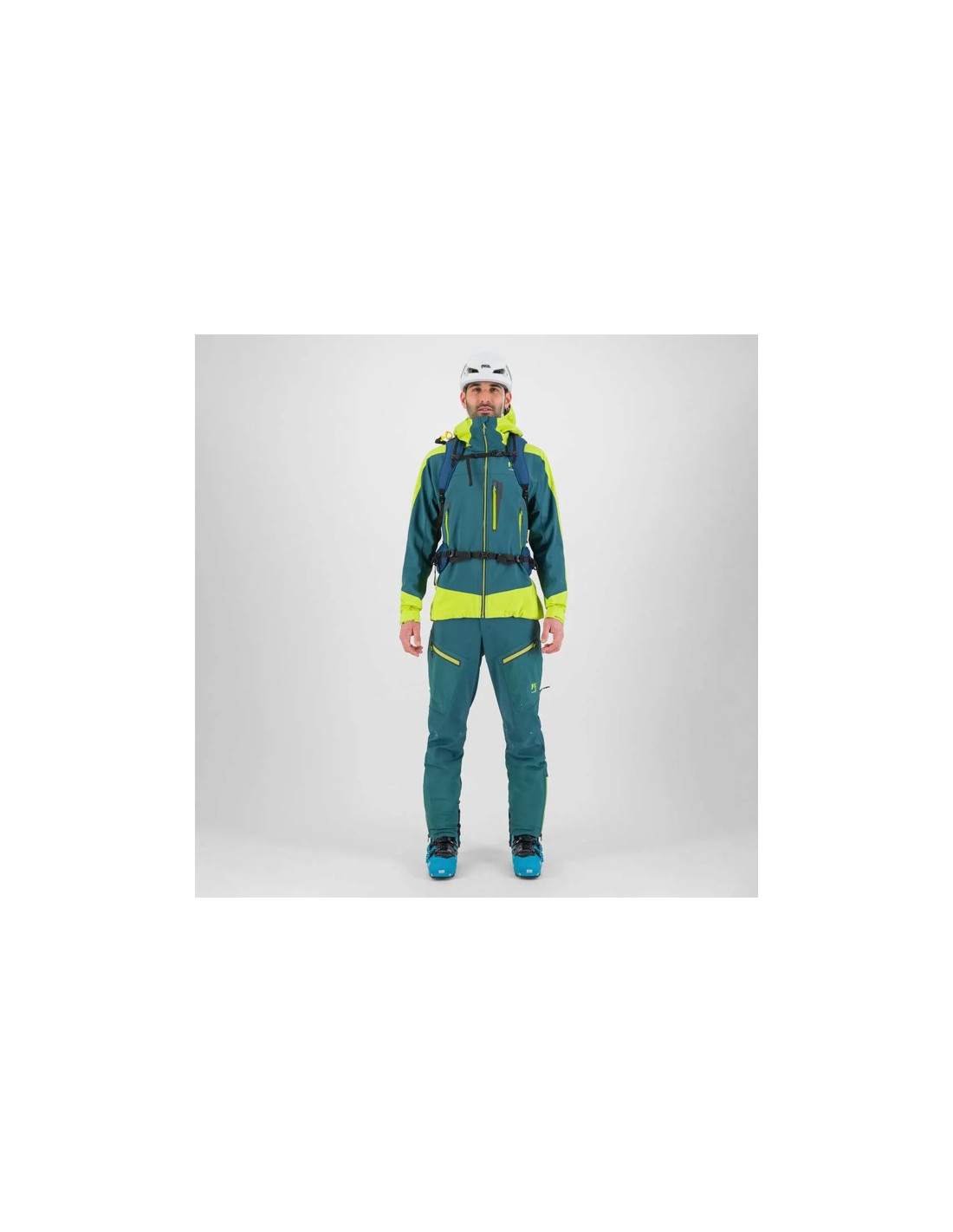 Két elülső zseb vízálló cipzárral.Egy mellzseb cipzárral.Beállító zsinór a kabát alján.Tépőzáras mandzsetta állítás.Belső hálós zseb a bőrök számára.Az optimális szövet és a hátsó védelemhez két fényvisszaverő rész F. A kapucni, a felső ujjak és a ruha alsó része vízálló anyagból készült, amelynek vízoszlopa 20 000 mm, légáteresztő képessége 41 000 g/m²/24 óra. A kabát többi része szélálló anyagból készült, kívül DWR-vel, belül gyapjúval.Súly: 585 g.