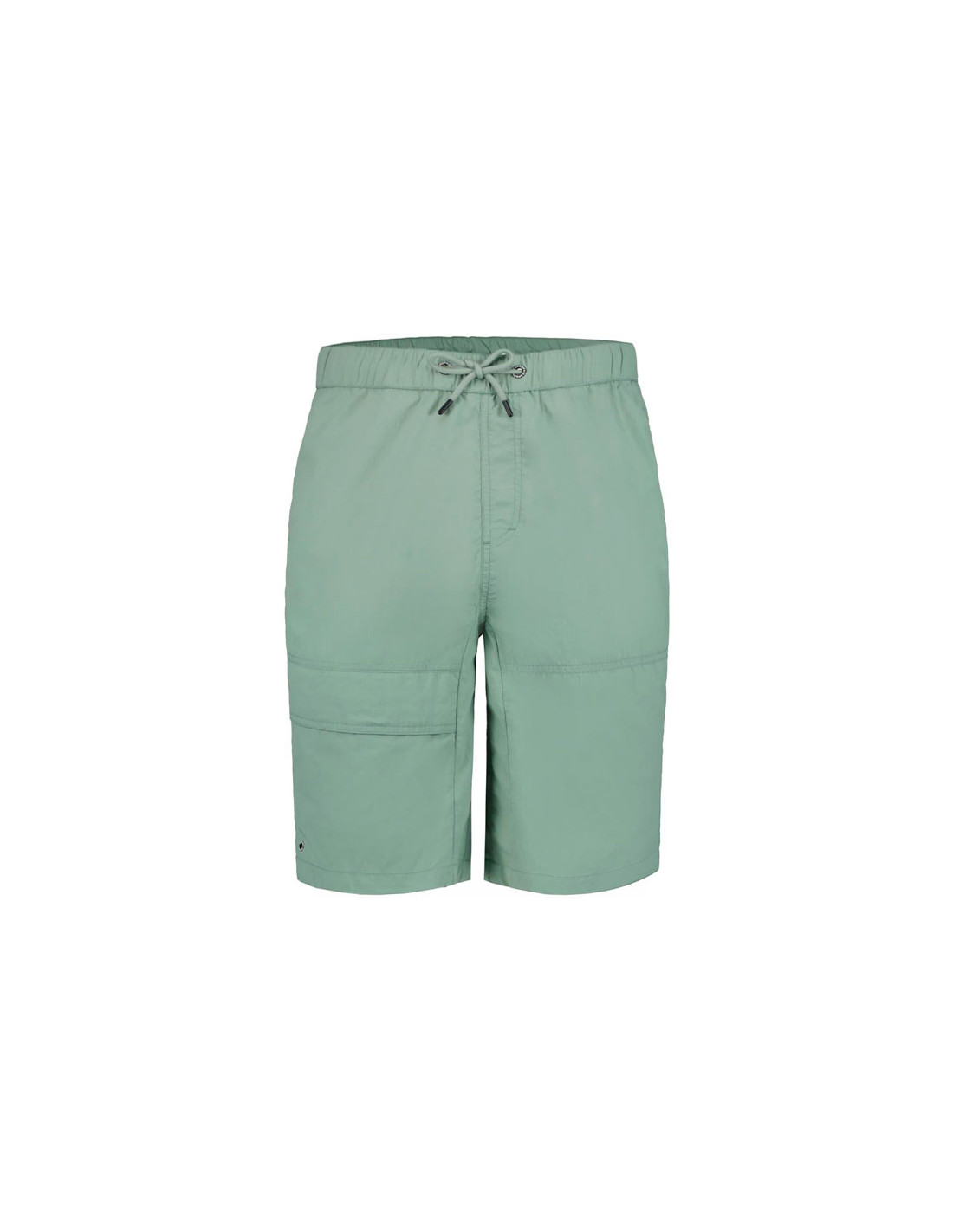 Normál szabású férfi rövidnadrág, hátsó cipzáras zsebbel, két elülső zsebbel és az egyik combon teherzsebbel. Elasztikus derékrész húzózsinórral. Logó címke. A szövet felületét vízlepergető bevonattal kezelték. Ez a szélálló anyag optimális szélvédelmet és meleget biztosít.