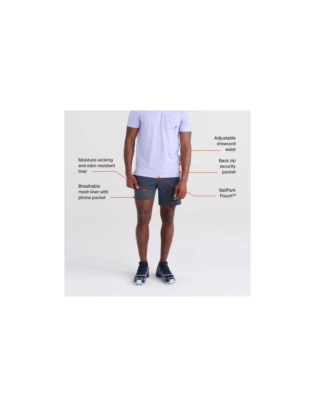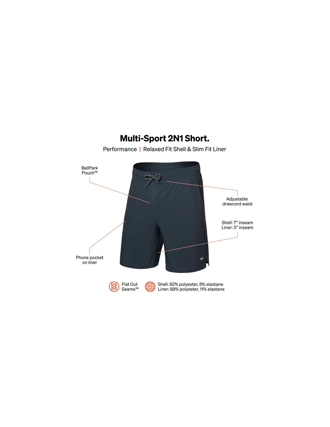 A SAXX Multi Sport 2N1 rövidnadrág sokoldalú ruhadarab, amely ideális különféle sporttevékenységekhez. 2 az 1-ben kialakítása a testhez illeszkedő Slim Fit bélést és a Relaxed Fit külső réteget ötvözi a kényelem és a mozgásszabadság érdekében.