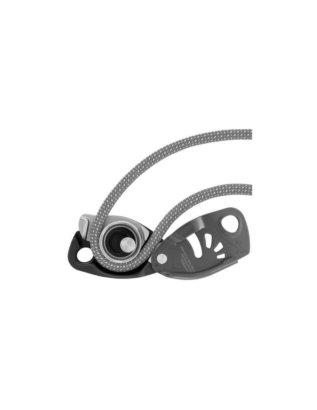 - Rögzítést segítő bütyök, amely nagy tűrést biztosít a fékező oldali kézállással szemben. a mászókötél és a fékező oldal közötti szögben.