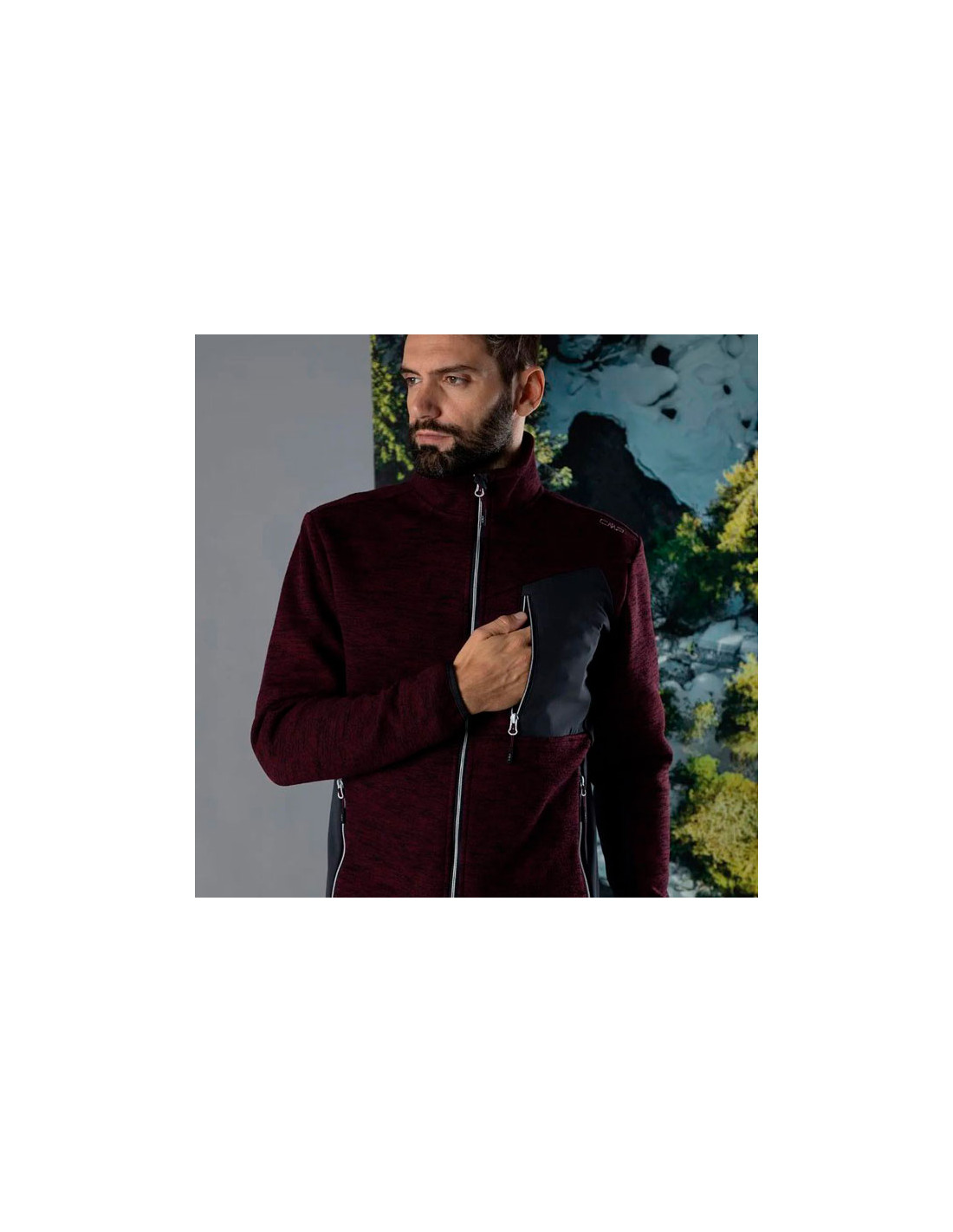 Polar kabát a CMP Knit Tech márkától, egy speciális szövetkeverékből készült anyag, amely meleget és védelmet biztosít. A ruhadarab szél- és dörzsölésálló füllel ellátott elülső cipzárral, elasztikus szegéllyel és mandzsettával, két oldalzsebbel és egy cipzáras mellzsebbel egészül ki.