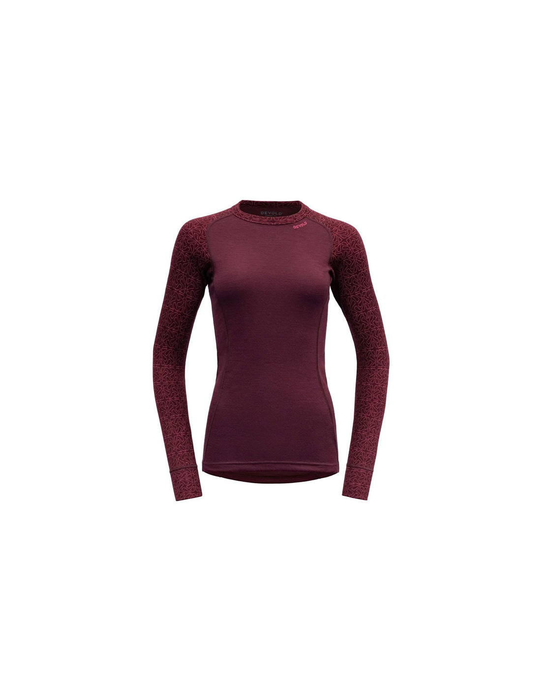 Hosszú ujjú póló a Devold márkától nőknek, a téli tevékenységek alaprétegeként.