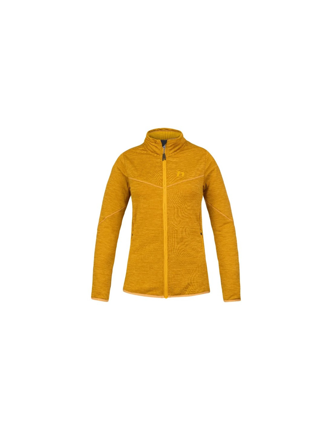Láncvédővel ellátott hosszú, fordított cipzárral és magas gallérral rendelkezik a nagyobb védelem érdekében. Az alsó szegély és az ujjak mandzsettái elasztikus felülettel rendelkeznek a biztonságos illeszkedés érdekében. Két fő cipzáras zsebe is van a kisebb tárgyak tárolására. A dekoratív varrások és a melange anyag egy csipetnyi stílust kölcsönöz>