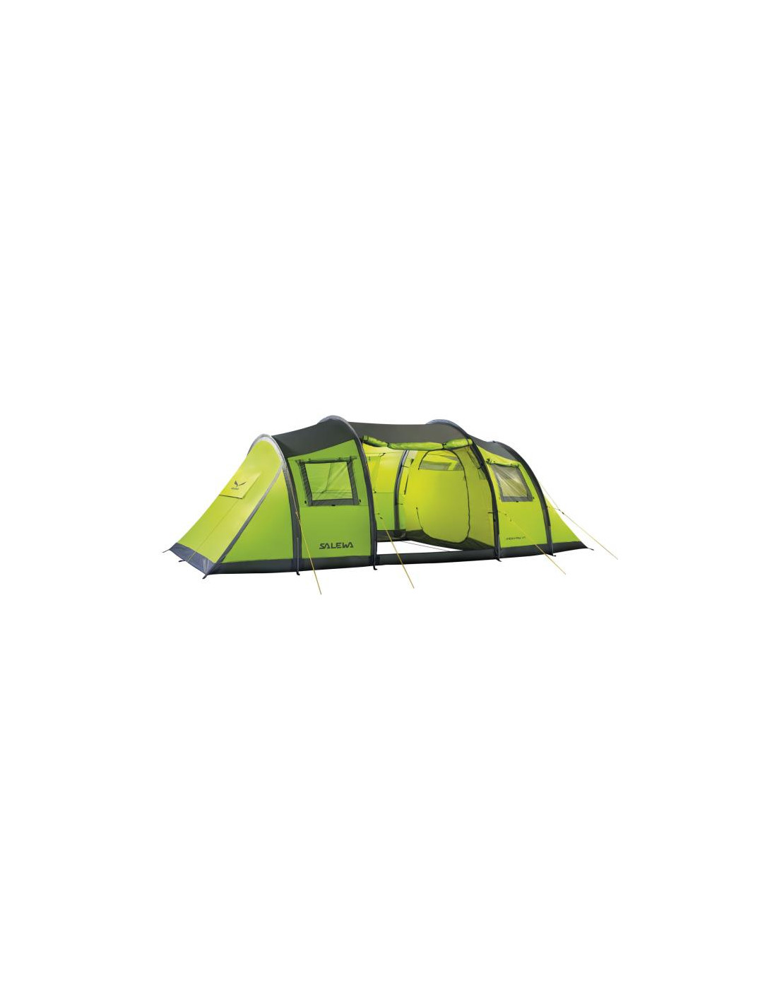 A külső sátor felállítása SALEWA üvegszálas rúddal gyors és egyszerű, még rossz időben is. A Midway két bejárattal és négy ablakkal rendelkezik a nagy mennyiségű fény és szellőzés érdekében.