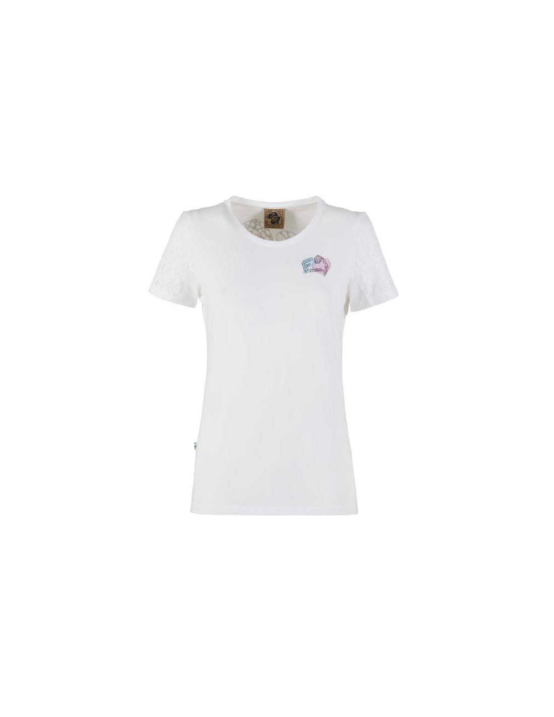 T-shirt a maniche corte elasticizzata e comoda da donna con marchio E9, modello aderente realizzato in tessuto di cotone.