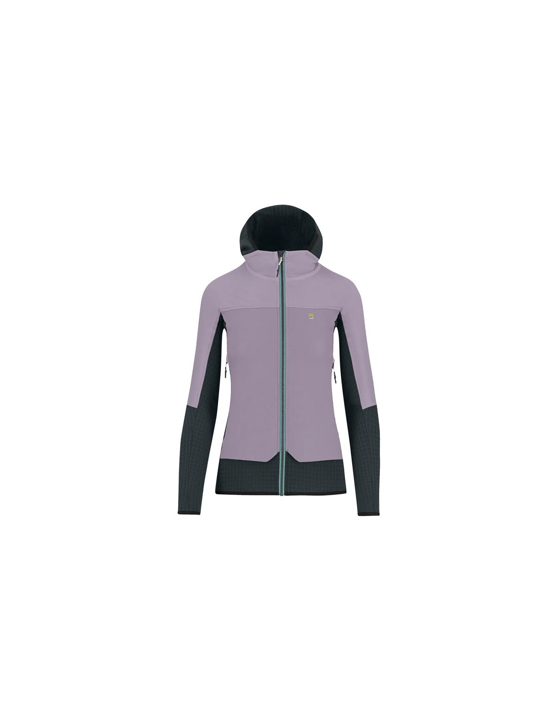 La parte anteriore presenta un tessuto antivento con trattamento DWR per respingere acqua e neve, insieme a un isolamento sintetico che fornisce calore senza aggiungere peso. La zona della schiena e delle ascelle è realizzata con un tessuto più leggero ed elastico per garantire la massima evacuazione dell'umidità e libertà di movimento.