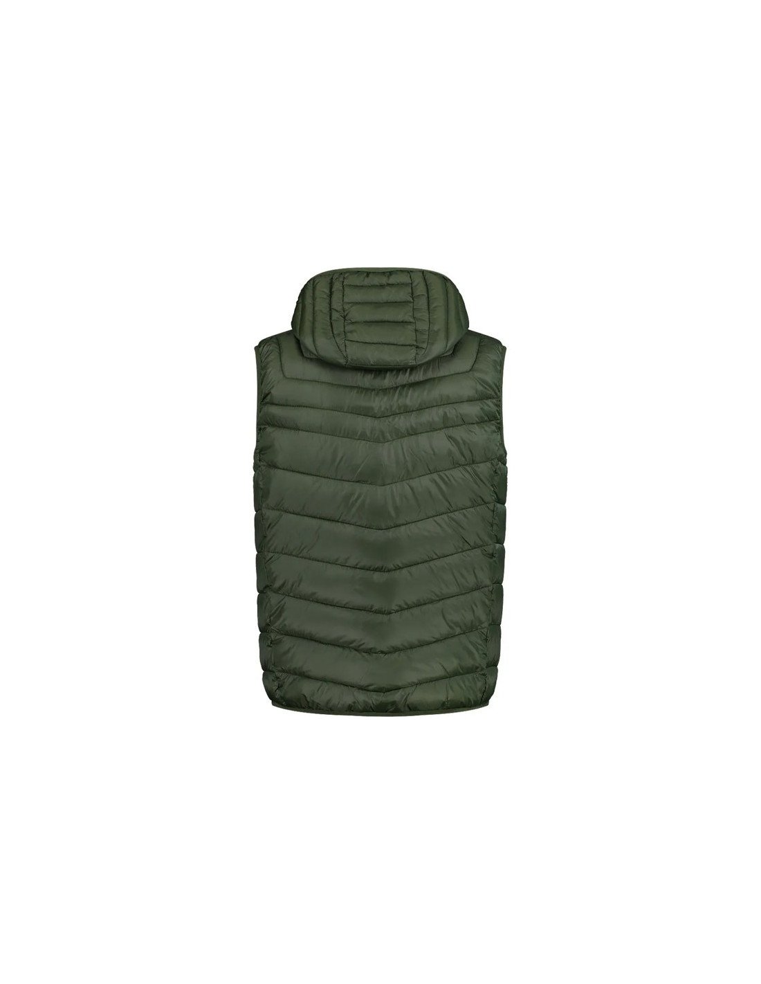 Gilet con cappuccio fisso riempito con DuPont Sorona Aura Flock, una fibra sintetica morbida e altamente comprimibile, parzialmente realizzata con materiali vegetali rinnovabili. Il suo design si è concentrato sulla minimizzazione dell'impatto ambientale.