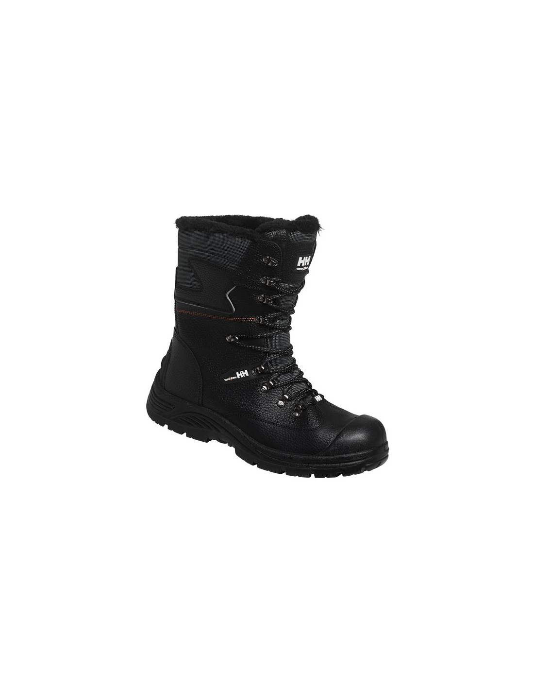 Scarponcino di sicurezza Aker Winterboot WW del marchio Helly Hansen Workwear per il lavoro in condizioni di freddo. La tomaia è realizzata in pelle rivestita in poliuretano impermeabile e una fodera in pelliccia sintetica per maggiore calore