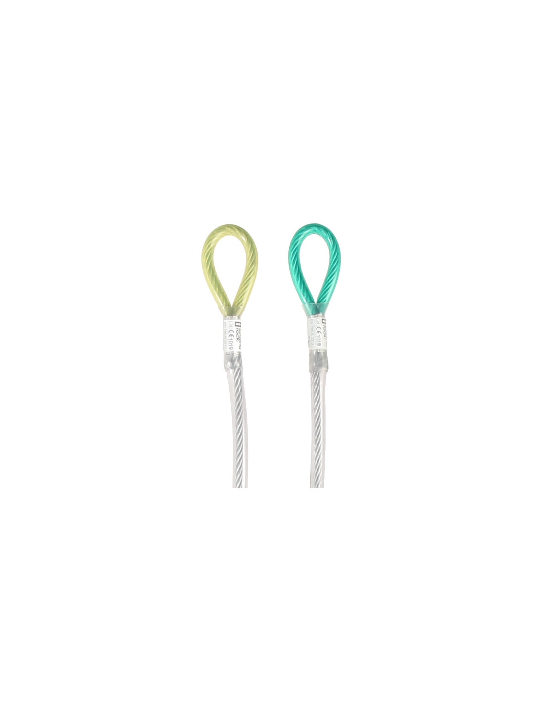 Cavo in acciaio zincato con anti-taglio e anelli sulle estremità e coperto con tubo di plastica protettiva. Molto pratico come elemento di ormeggio nella potatura e attività con attrezzature di taglio o saldatura.