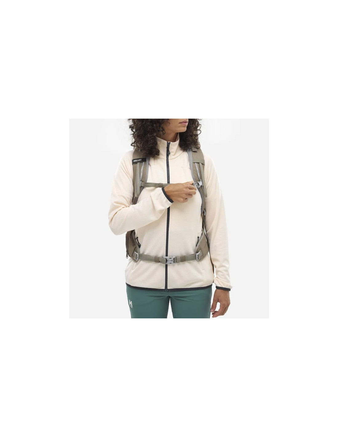 Realizzato con materiali riciclati, questo zaino è una scelta sostenibile per gli escursionisti. Incorpora caratteristiche come cinghie ergonomiche per le donne, cinghie di regolazione del carico, cinghie per il poggiamano, cintura con tasca, cinghie di compressione, porta bastoncini e tasche multiple per un'organizzazione ottimale.
