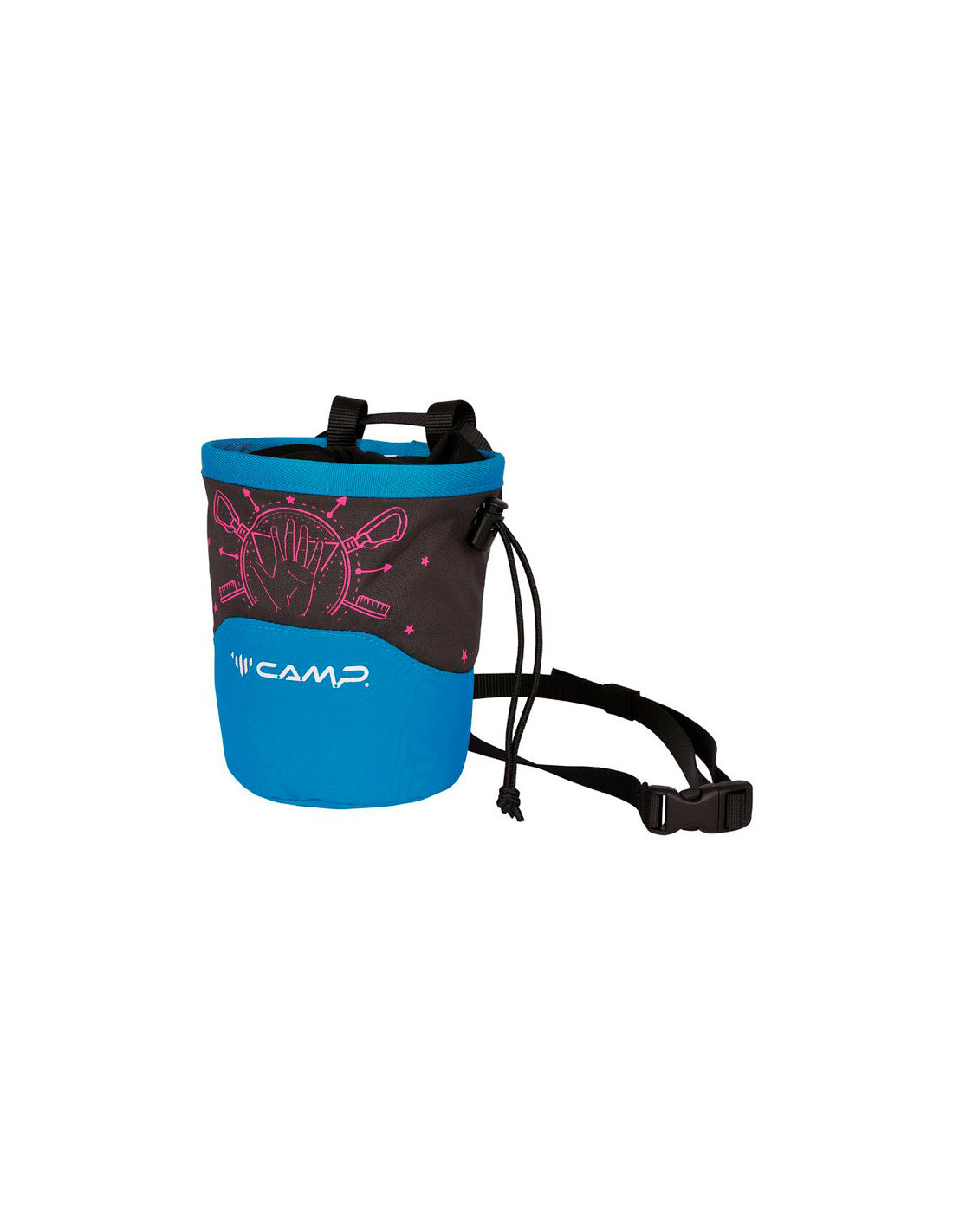 Magnio maišelis iš prekės ženklo Camp, 1 litro talpos ir cilindro formos, kad būtų lengva pasiekti ir tiksliai uždaryti.