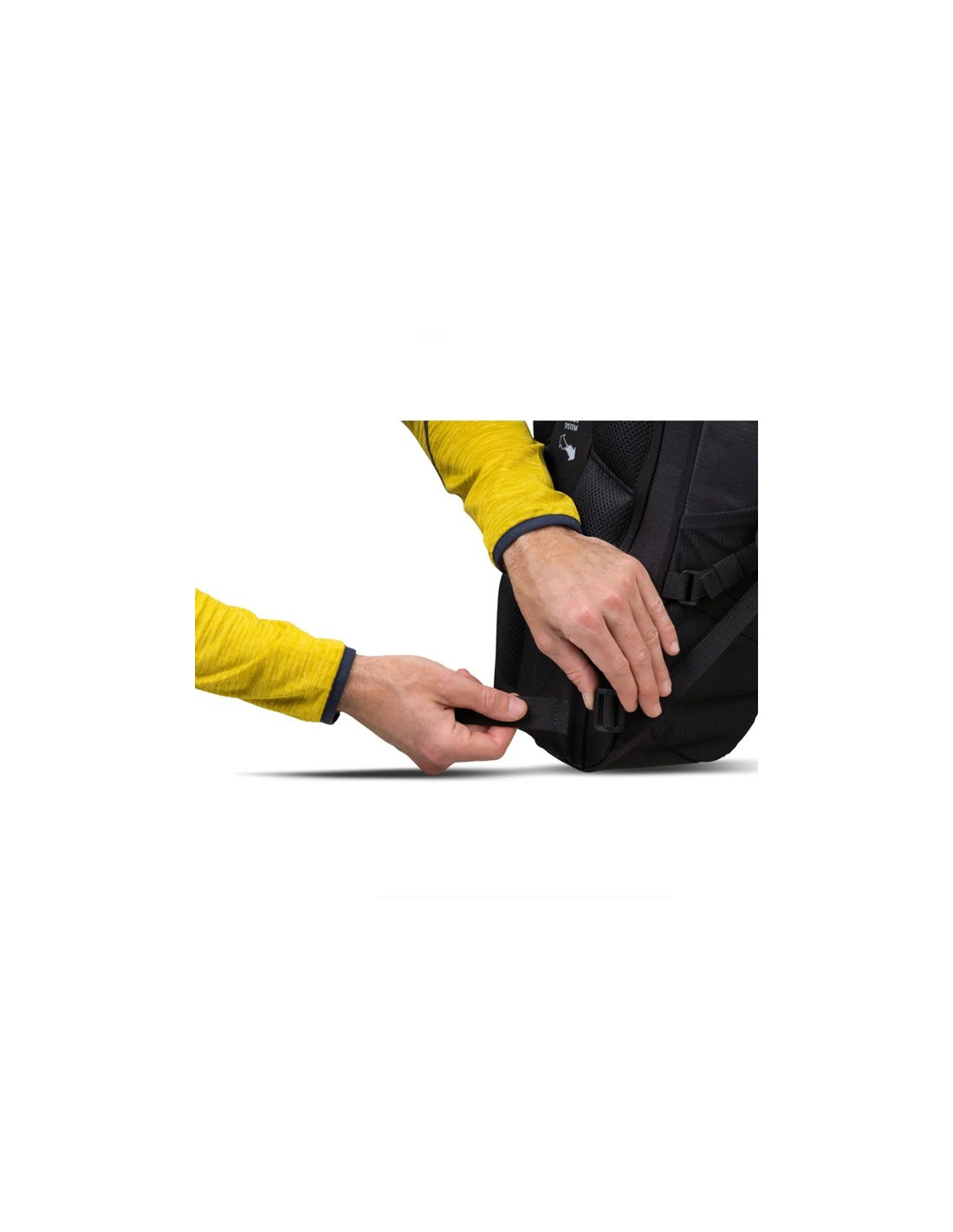 Jame yra anatominės formos oro vėdinimo sistema, leidžianti oro cirkuliaciją tarp nugaros ir kuprinės, išlaikant komfortą veiklos metu. Paminkštinti pečių dirželiai kartu su slankiojančiu krūtinkaulio dirželiu ir lengvu diržu su nuimama kišene užtikrina asmeninį ir saugų prigludimą.
